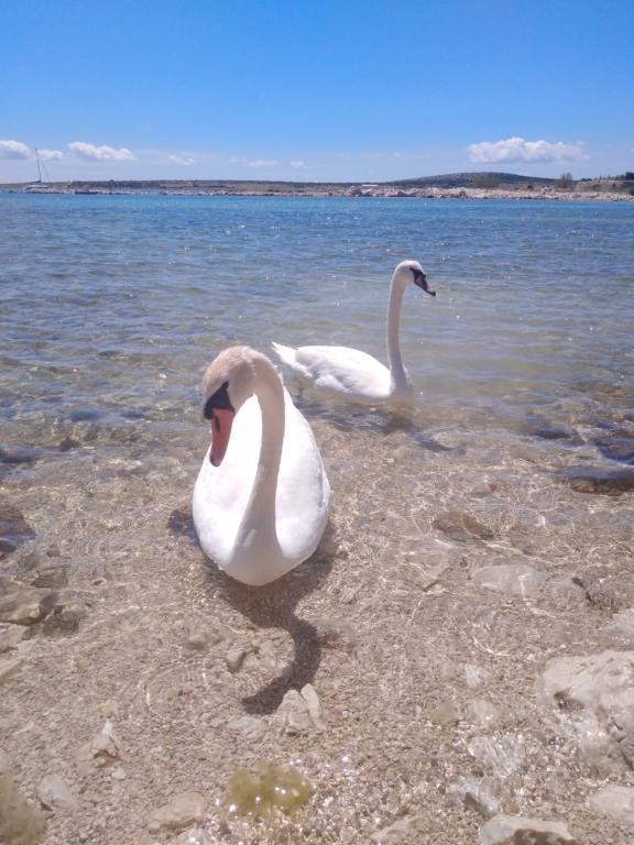 We rent apartments in Košljun, on the island of Pag. A small quiet place without crowds and everyday hustle and bustle. Distance from the town of Pag 15 min, from Novalja 20 min. The beach is 100 m away from the apartment (pebble shore, sand in the sea). Along the promenade there are many beaches ideal for relaxing and swimming in the clear clear sea. The pine forest is at the end of the place, also with a beach that attracts views. Free wi-fi. Shop with a small cafe is located 20m from the apartment. There is a small restaurant in the place where fast food and various drinks are served. Many guests return every year to this beautiful little place that has everything you need for an ideal vacation. In the house we have 5 smaller apartments, with 1 bedroom and an extra bed located in the kitchen. Each apartment has a terrace overlooking the sea. On the ground floor is a larger apartment with 2 bedrooms and a sofa bed in the kitchen, terrace in front of the apartment. All guests have the opportunity to use the grill, in a special part of the terrace on the ground floor, with an announcement for other guests.