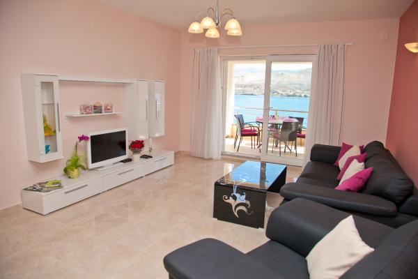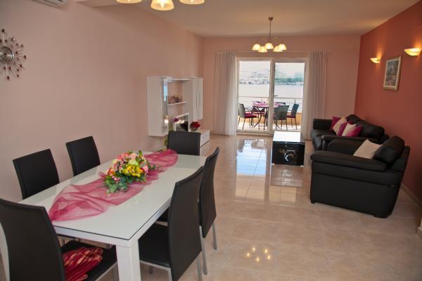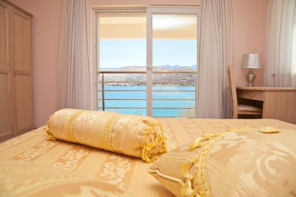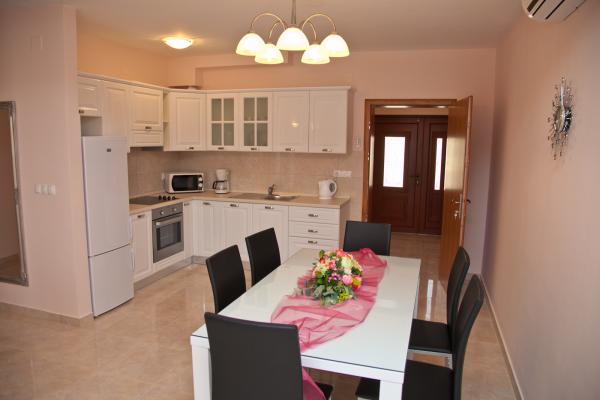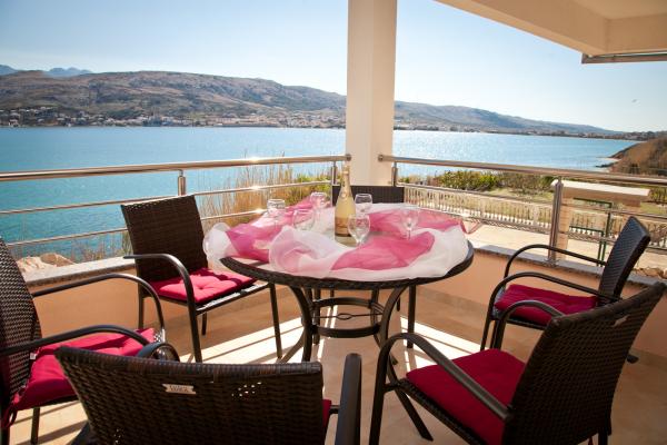 Fully furnished apartments, located right by the sea on the island of Pag - Pag area guide. Built 2011/2012 for the first time this summer rent. One apartment is 120m2 and consists of 2 double bedrooms (one with sea views), 2 bathrooms with washing machine, plus a bathroom, fully equipped kitchen with dishwasher, dining room, plus a small kitchen, terrace with sea views. The second apartment has 60m2 consisting of 1 double bedroom, kitchen / dining room, bathroom, terrace with view on the klimitizirana more.Oba apartment, a beach front house parking. The apartments are 15 min. walk from the center -