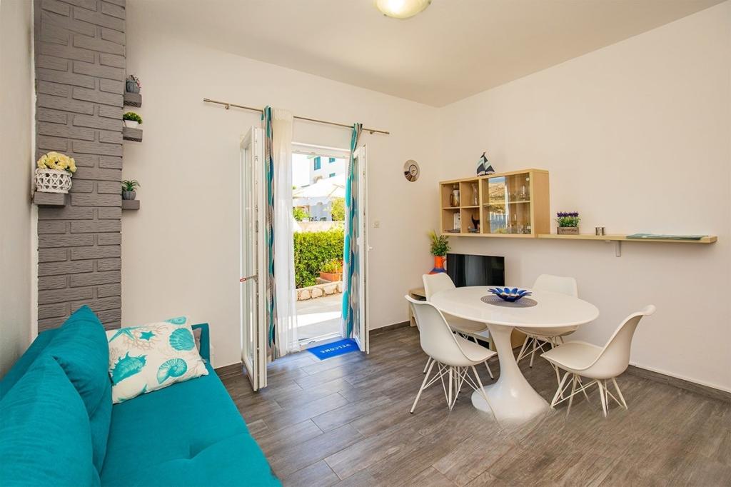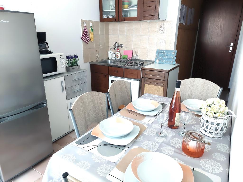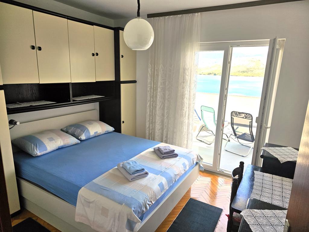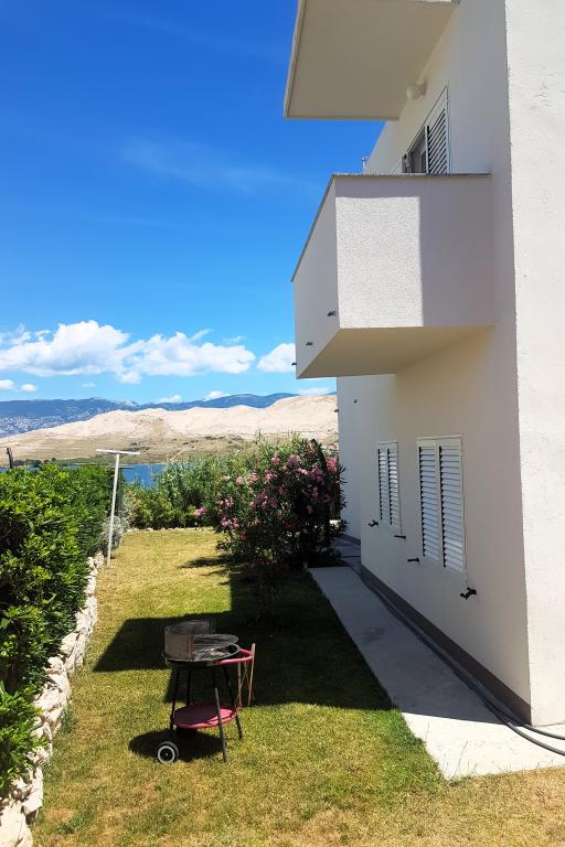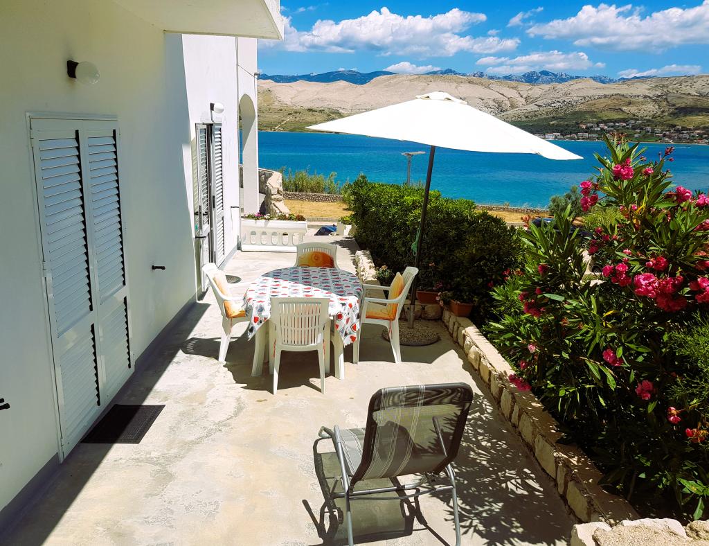 The apartment was clean and seems same as in the pictures with full equipment. The old lady, is very friendly, she cooked us pancake ( filled with Nutella and jam ) in the middle of our vacation. We have 2 dogs and had a lot of questions. The lady's son answered quickly and we could solve everything. The weather was great, the sea is just 5 minutes from the apartment. What else do you need more? We enjoyed it, and totally recommend for everybody to reserve a flat here. Visit Pag, because it is beautiful, I love it. Best Regards, Norbert from Hungary