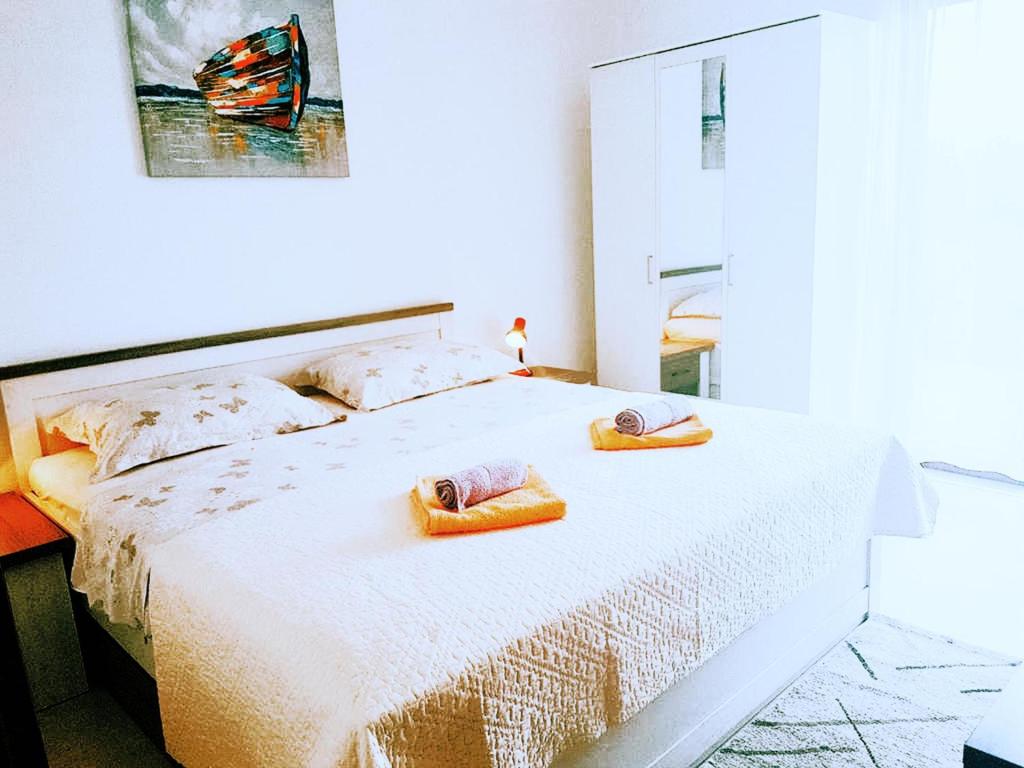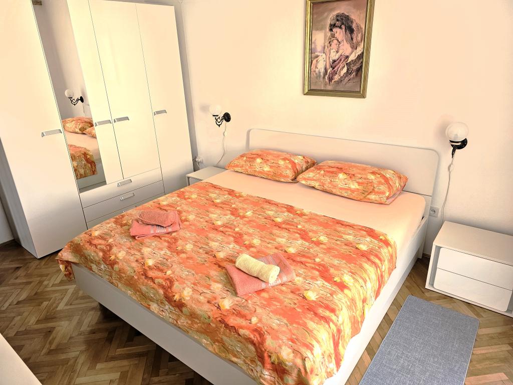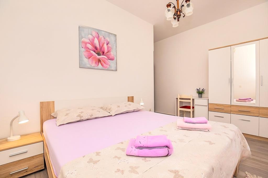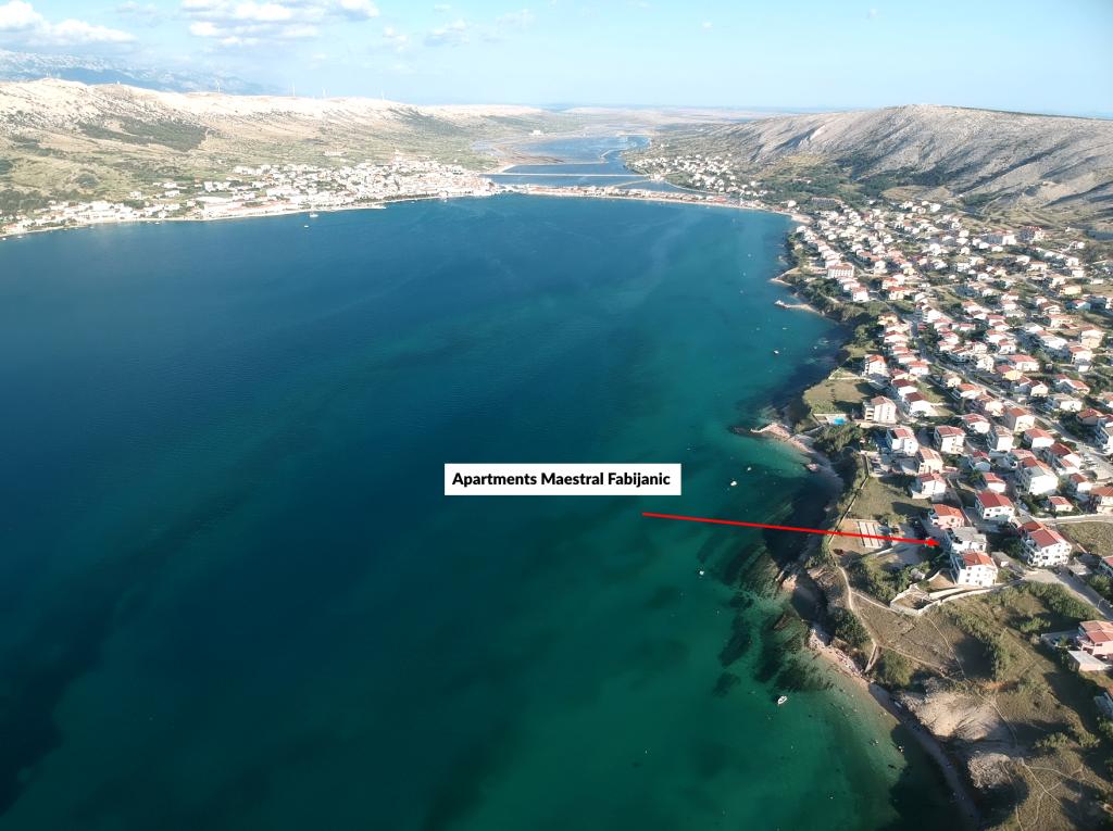 Apartments Maestral Fabijanić, first row to the sea with three beaches within a radius of 50 - 150 m. Located in a quiet part of Pag, approximately 2 km from the city center. Accommodation in our facility (525m2 garden and 1000m2 parking) consists of modern and well-equipped apartments designed to provide maximum comfort and practicality. Each apartment is tastefully decorated, comfortable furniture and a number of amenities that ensure a pleasant stay. Whether you are traveling with family, friends or as a couple, we have the perfect apartment that will meet your needs. Our apartments are spacious and include amenities such as air conditioning, Led TV with satellite programs with free WIFI (50 Mbit), fully equipped kitchens and private bathrooms. The apartments have large terraces with a beautiful view of the Adriatic Sea, the town of Pag, the Velebit mountain, allowing you to wake up to the soothing sound of the waves and enjoy picturesque sunsets from the comfort of your own balcony or terrace. We are looking forward to your arrival!