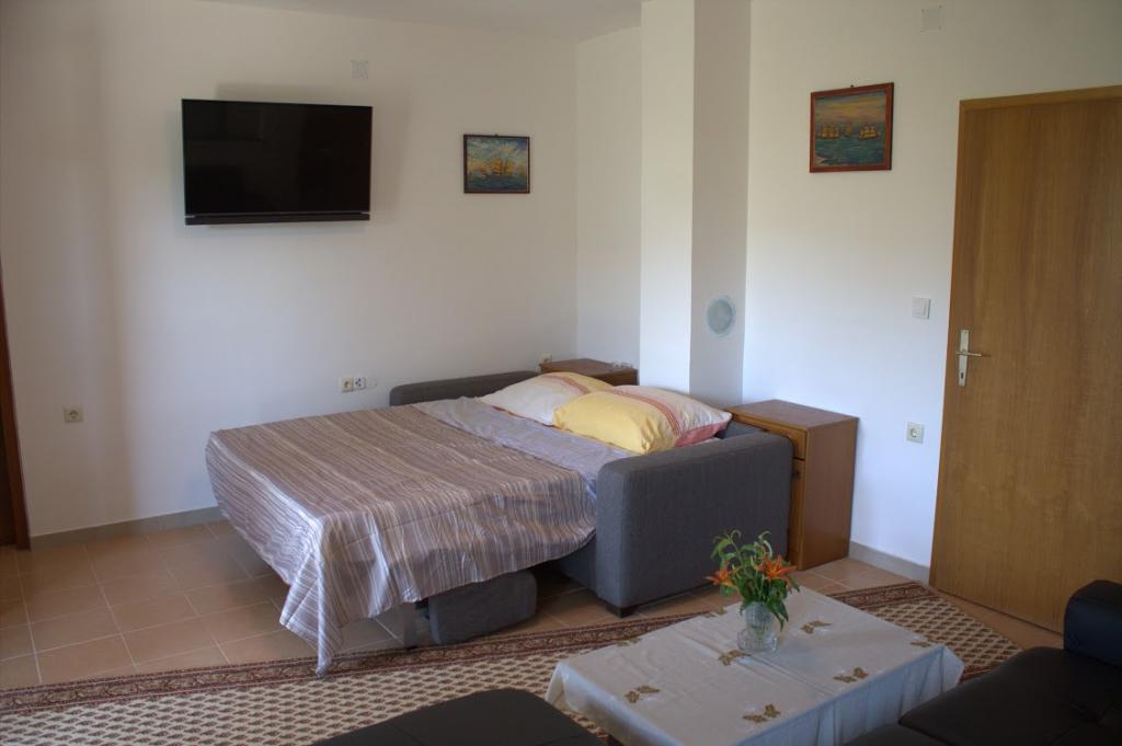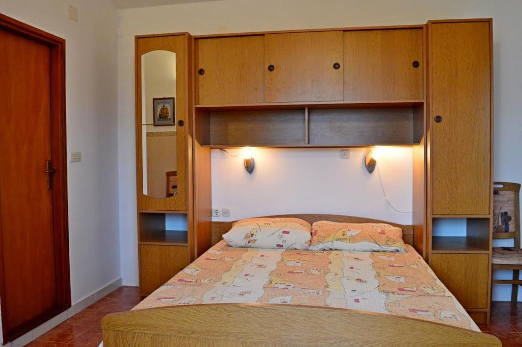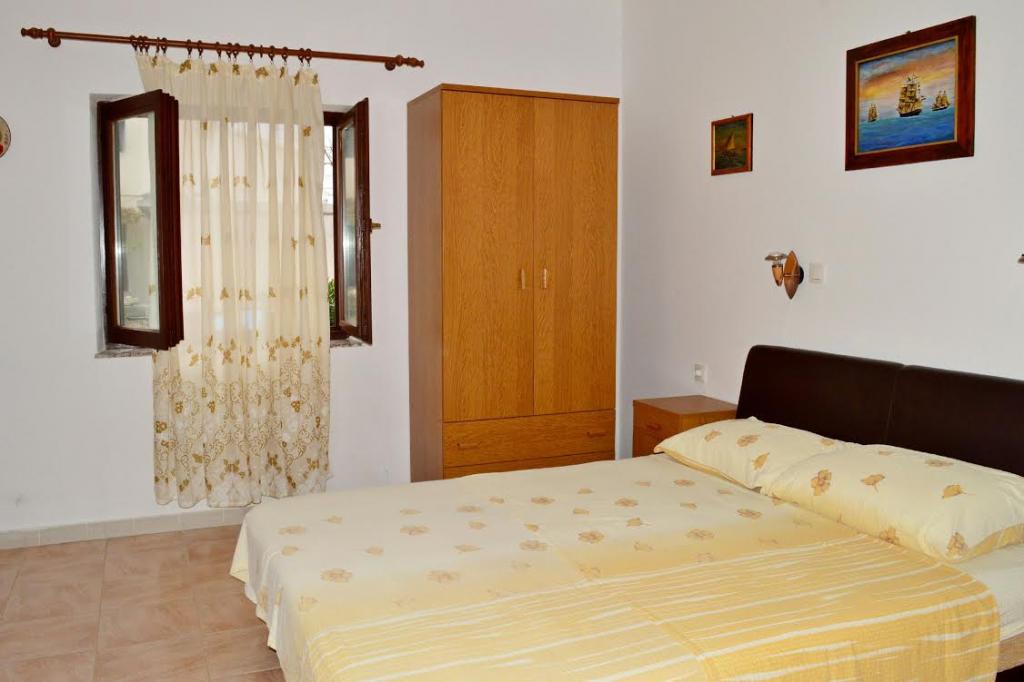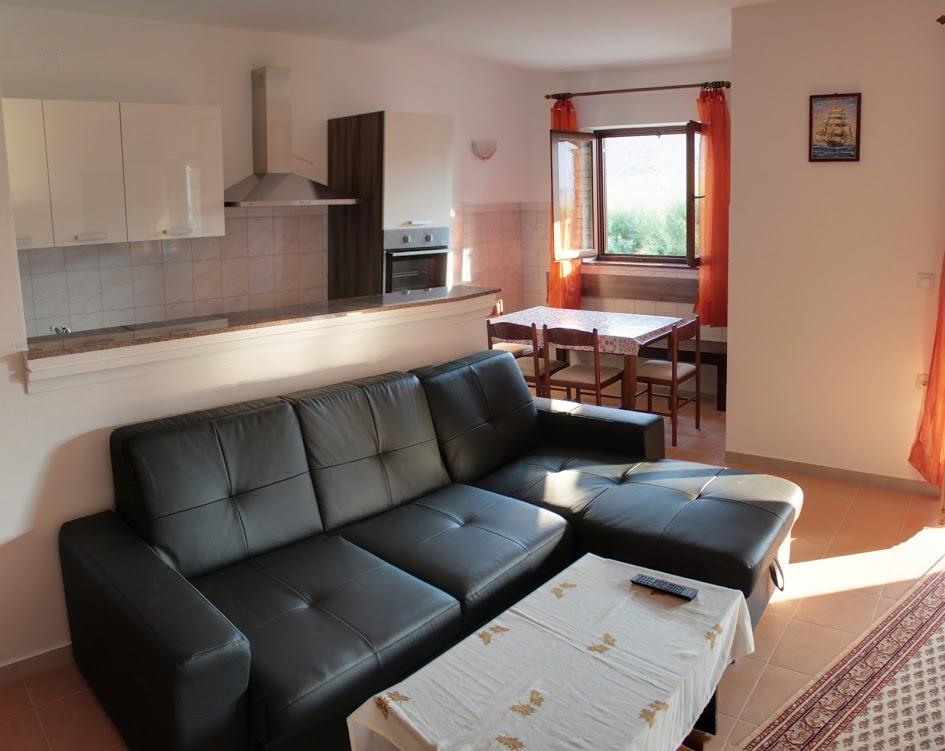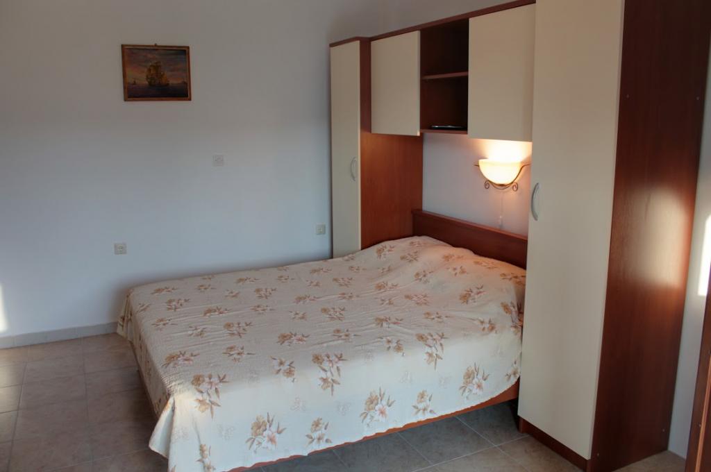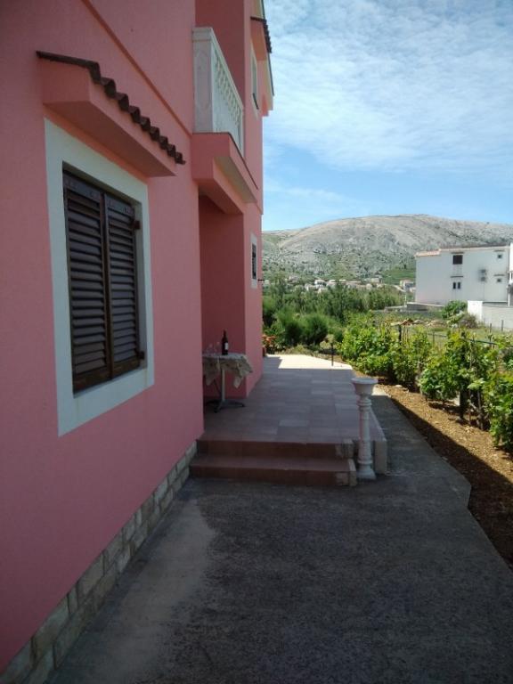 Three studio apartments: rooms with kitchen, bathroom and a large apartment for 4 people (2 + 2) are located in the town of Pag. Two studio apartments are located on the ground floor and one studio apartment on the first floor of a large family house. Located 10 minutes walk from the main town square and fifteen minutes from the main city beach. The apartments are located in a very quiet and peaceful place surrounded by gardens, nature and greenery suitable for guests who want peace and quiet. The apartments are 30 square meters in capacity for two people, have one bedroom, kitchen and bathroom with shower, in front of the entrance to the apartment there are small terraces. The apartments are equipped with TV, satellite and internet connection, the apartment on the first floor has air conditioning. On the ground floor of a large family house there is an apartment of 60 square meters with one bedroom, large kitchen, large living room with double bed for four people (2 + 2). In front of the apartment is a small terrace.