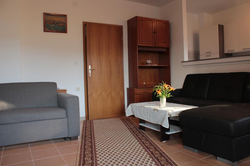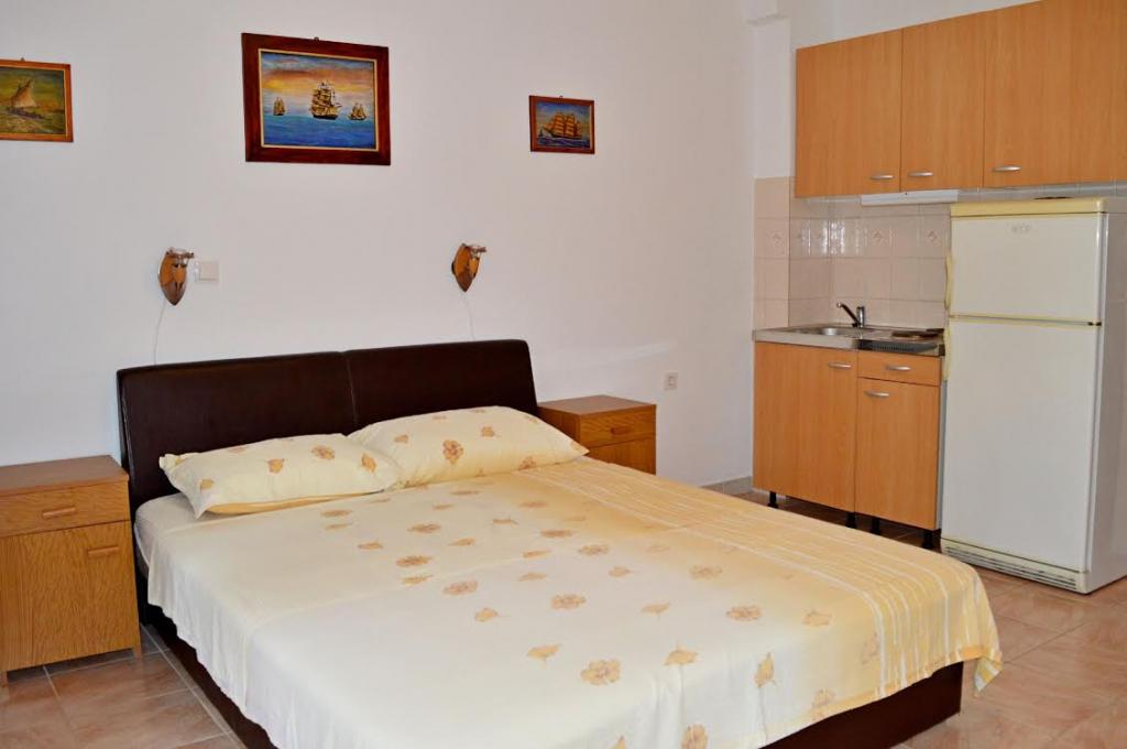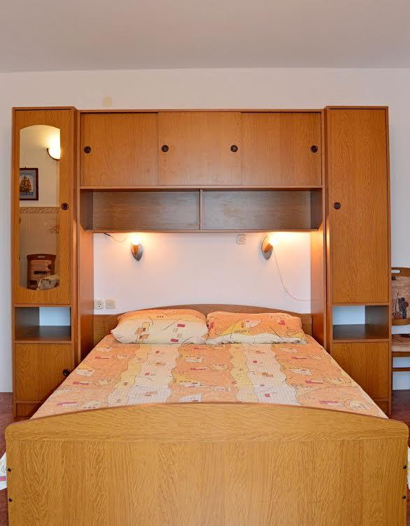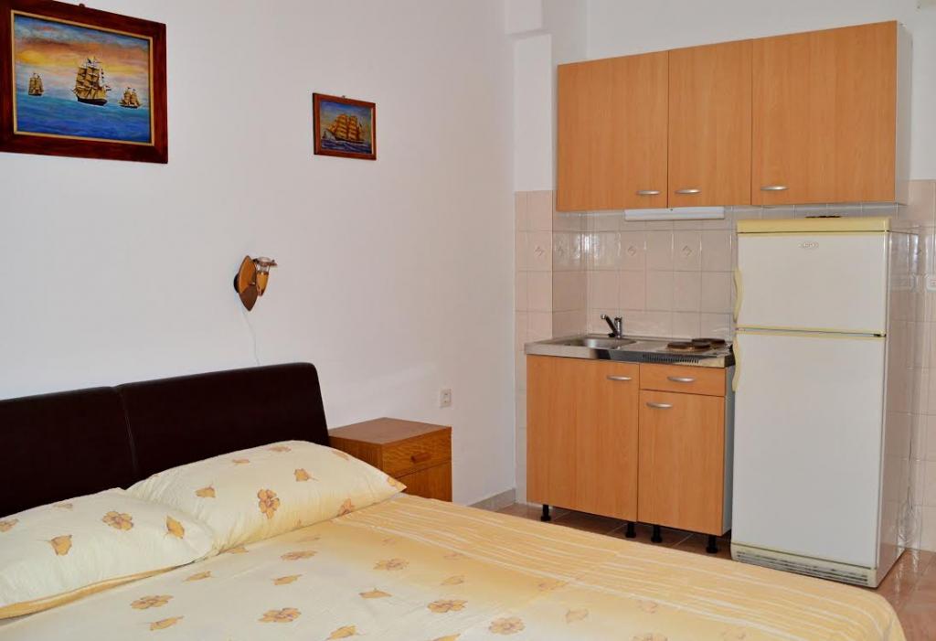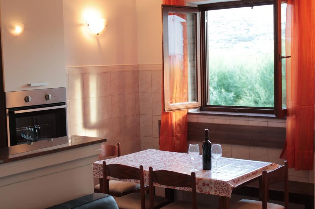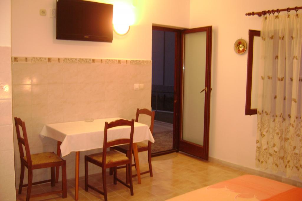 Three studio apartments: rooms with kitchen, bathroom and a large apartment for 4 people (2 + 2) are located in the town of Pag. Two studio apartments are located on the ground floor and one studio apartment on the first floor of a large family house. Located 10 minutes walk from the main town square and fifteen minutes from the main city beach. The apartments are located in a very quiet and peaceful place surrounded by gardens, nature and greenery suitable for guests who want peace and quiet. The apartments are 30 square meters in capacity for two people, have one bedroom, kitchen and bathroom with shower, in front of the entrance to the apartment there are small terraces. The apartments are equipped with TV, satellite and internet connection, the apartment on the first floor has air conditioning. On the ground floor of a large family house there is an apartment of 60 square meters with one bedroom, large kitchen, large living room with double bed for four people (2 + 2). In front of the apartment is a small terrace.