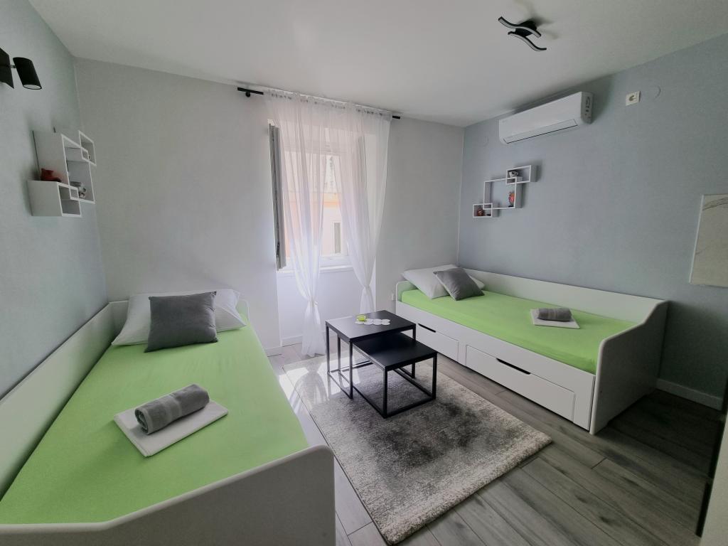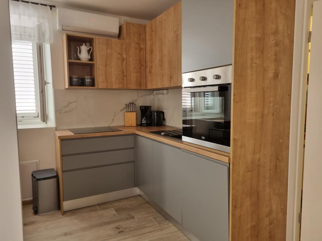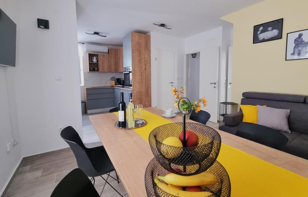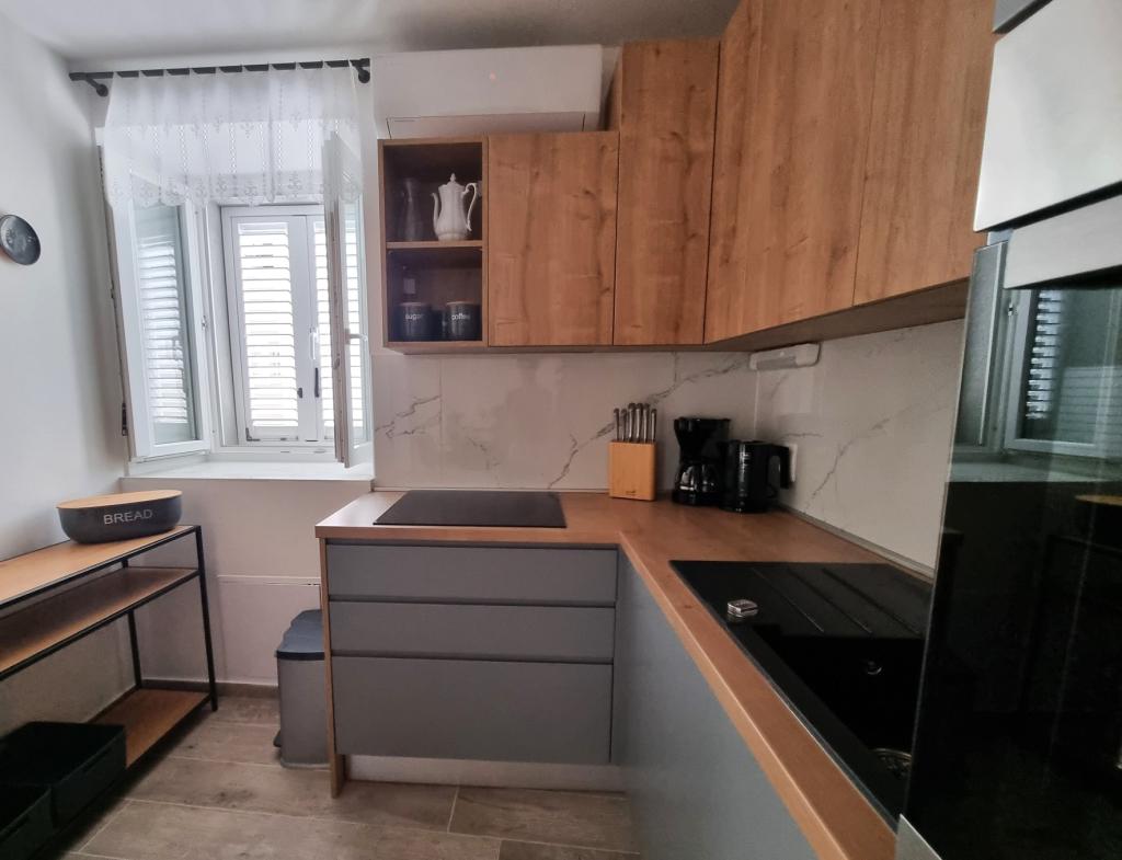 The newly renovated house is located in the very center of the city of Pag, in the immediate vicinity of the main town square. Accommodation for 4 people is on two floors and includes: living room with kitchen and bathroom on the ground floor, two bedrooms and a bathroom on the first floor. The house is 500 m from Prosika beach.