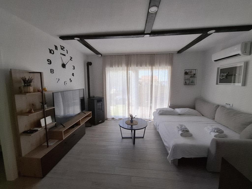 The house is newly built, with full equipment. Once there you won't need a car. The house is located on the sea, more precisely on the beach 20m away, just a few steps away. In front of the house there is a cafe with food in our property. The center is 400 m from the apartment, or more precisely, a 3-4 minute walk. Everything is at your fingertips (cafes, restaurants, shops, kiosk, post office...) The apartment is located in a quiet part of town.