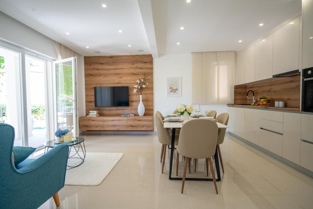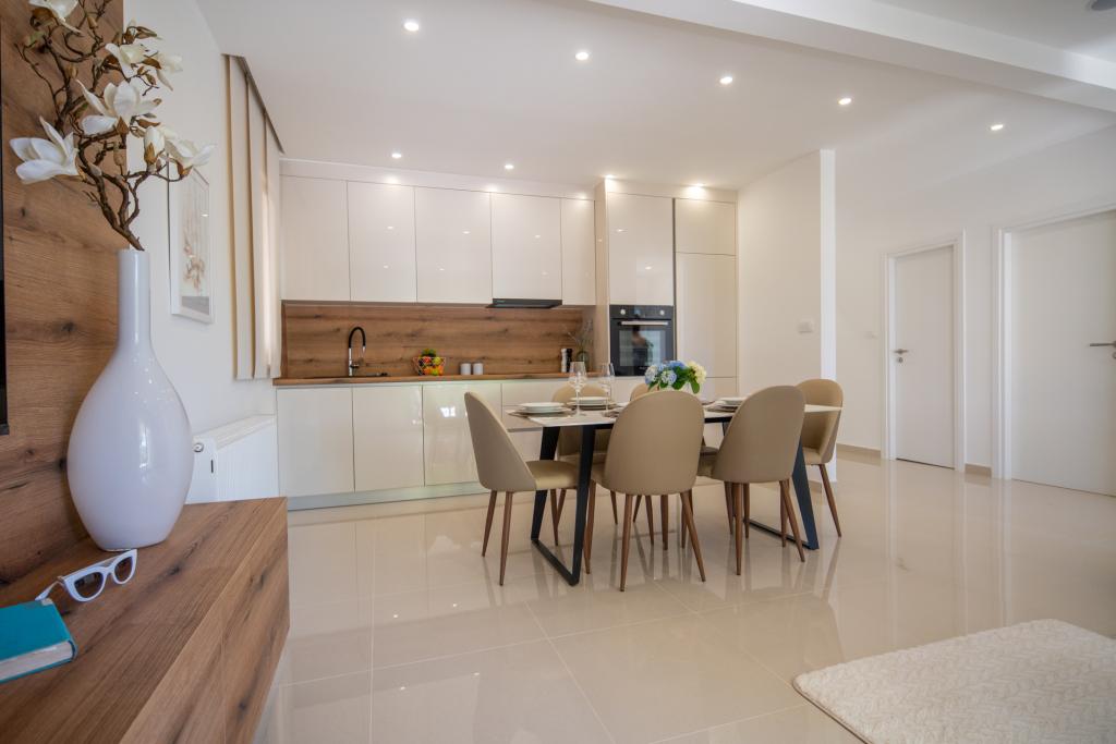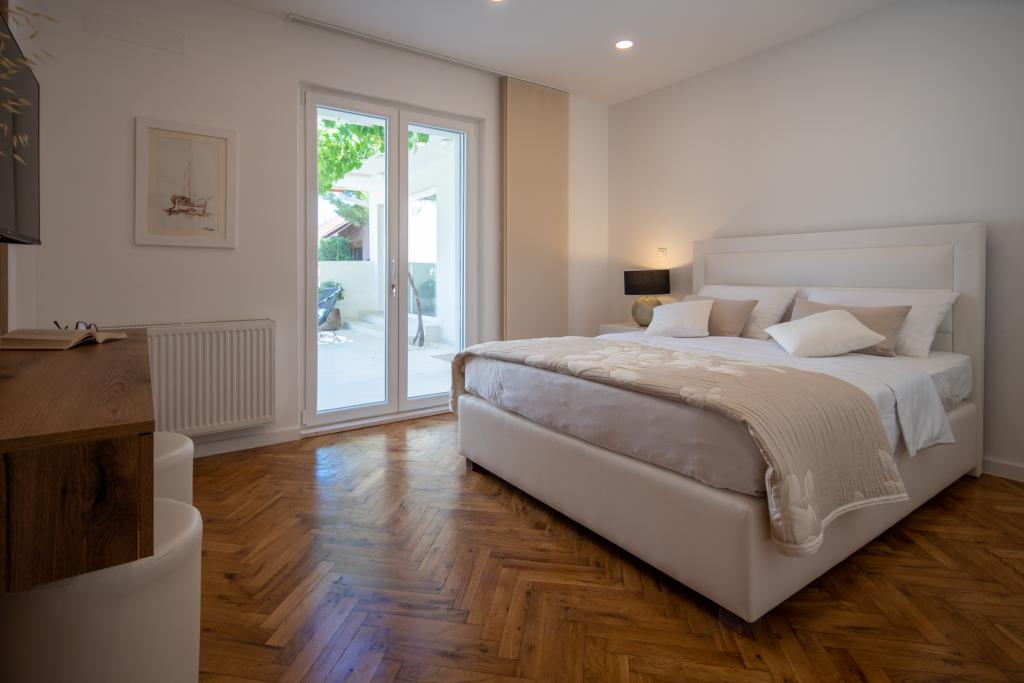 The modern and modernly equipped apartment GARDEN is located on the ground floor of the building and offers its guests, who are also the only guests of the building, a vacation in an oasis of greenery with a large garden and grill. The apartment has 3 bedrooms with a double bed, where each room has its own bathroom and TV, fully equipped kitchen, living room and two terraces. It is 10 minutes away from the town center and beaches on foot. The apartment is an ideal starting point for exploring the rich possibilities offered by the destination.