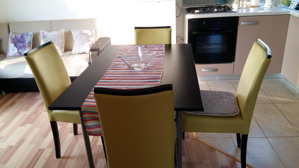 Fully equipped 3-room apartment in a quiet area. Large terrace and balcony with sea view. The possibility of using the barbecue in the garden. Secured parking space in the shade.