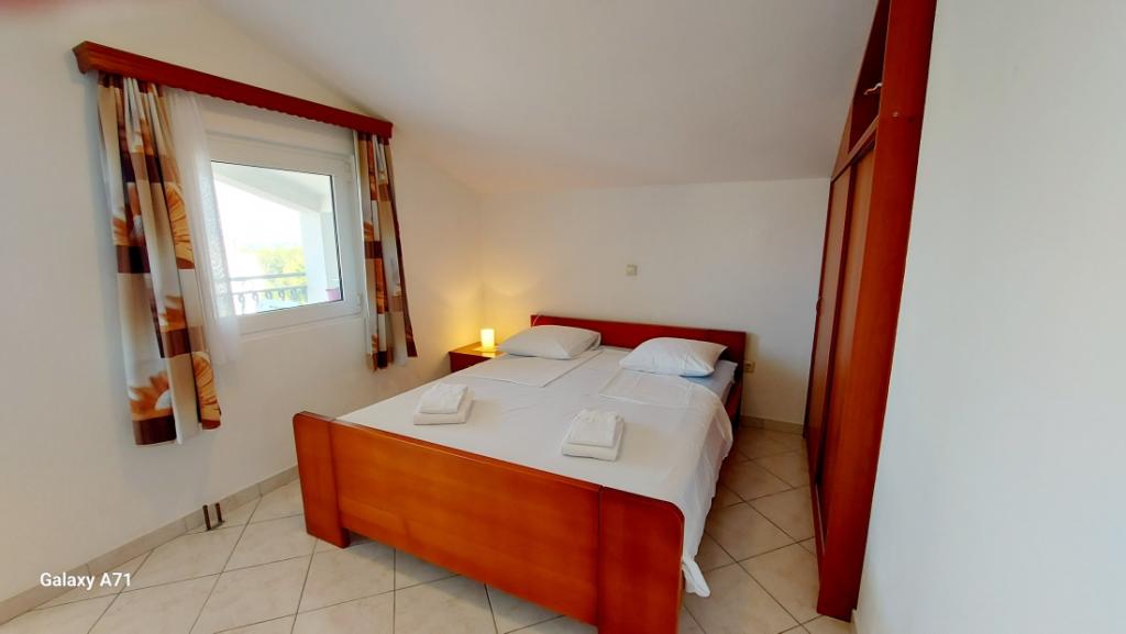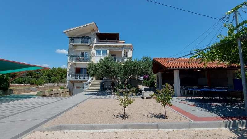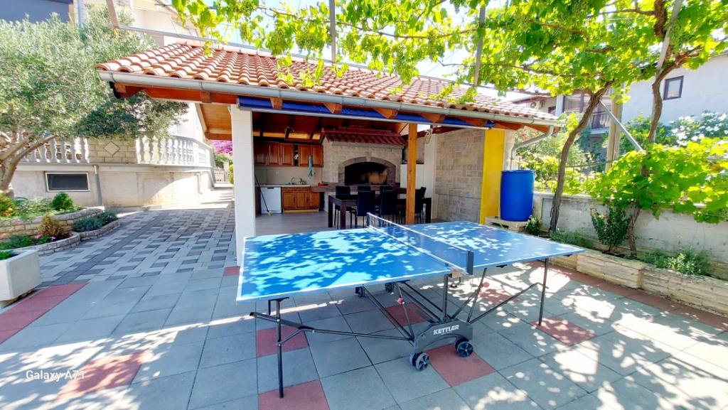 Read more Accommodation unitsVilla Marija is located in a very quiet street. SMALL animals are allowed (please inform us when booking). The entire house is surrounded by a wall and a gate. A large bowling alley, a table tennis table and a large barbecue are available for everyone. There is a large private, shaded and closed parking lot, you are 800 meters from the beach and 400 meters from the shop. For booking, you must pay a 20% deposit at the time of booking, and the rest is paid in cash on the day of arrival.