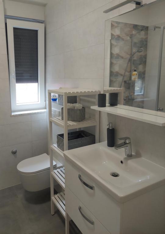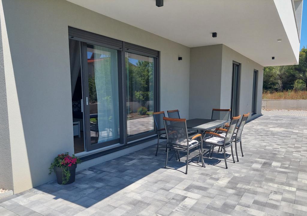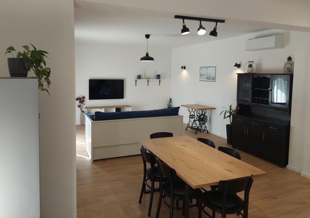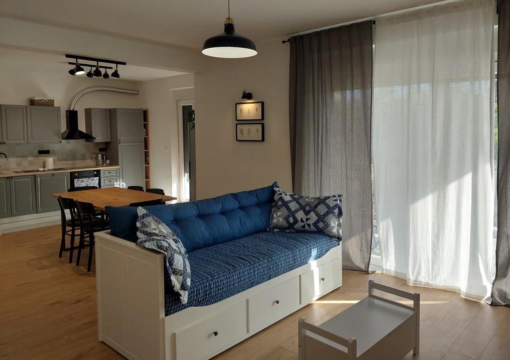 The apartment is located in a quiet part of town, on the ground floor of a newly built family house. It consists of two bedrooms, a bathroom, a toilet, a kitchen and a spacious living room. All rooms are air-conditioned. (Each bedroom has its own air conditioner) Free wifi, washing machine and dishwasher are available in the apartment. There is a terrace in front of the apartment. Secured parking space in the yard. The apartment is a 10-minute walk from the beach, free parking is provided in the center of town.