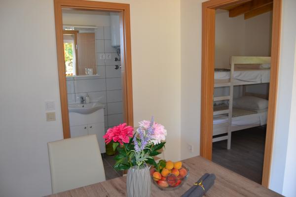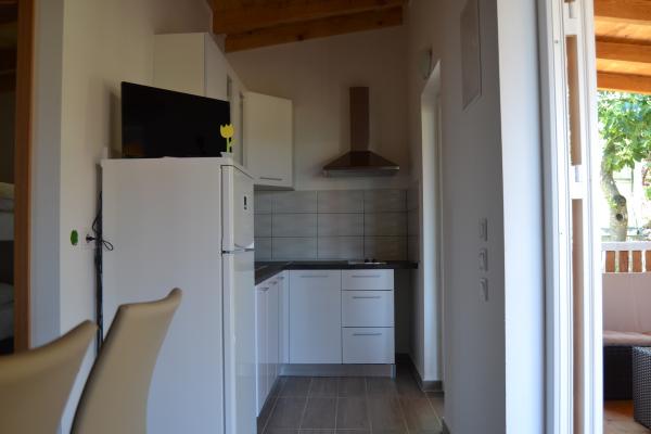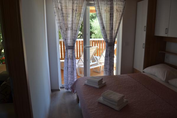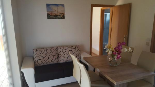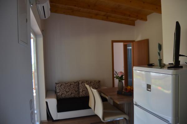 Green, mild climate, clean air, beautiful sea view, this is something that everyone will love in this place. Newly built two apartments situated in a quiet location. We offer a double room with bathroom, bedroom with two single beds that can be connected, kitchen with dining area and sofa and a bathroom. On a beautiful spacious terrace is set for 4 people and two sunbeds. Do you want to spend your vacation, and you want to take your dog and we provide this capability. All are welcome in our small, beautiful, newly built apartments. Air conditioning, bed linen, towels and WiFi included.