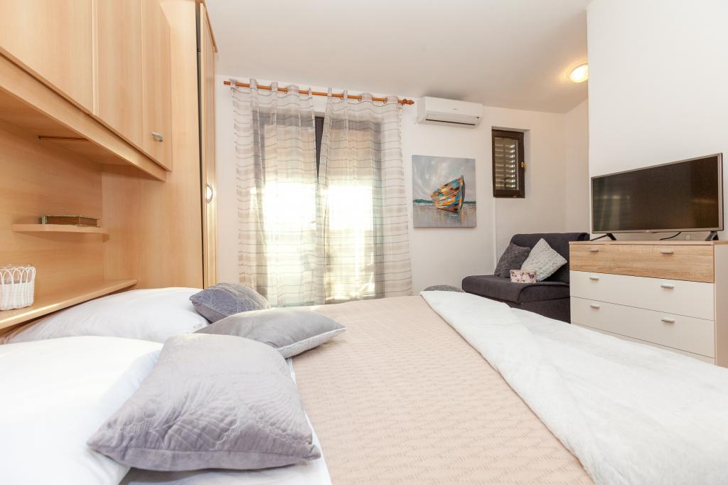 Welcome to Miro Apartments! Our apartments are located in a quiet part of town, not far from the center of Pakoštane. It takes 5 minutes to walk to the beautiful beach and the center. The accommodation is tucked away in a busy street, so if you have children you can enjoy our environment without fear. Next to the apartments in our large garden there is a fireplace where you can prepare a delicious meal. Also, near the fireplace is a garden with unspiced vegetables (tomatoes, cucumbers, peppers ...) at your disposal. In front of the apartment there are secured parking spaces. Wherever you are staying, we wish you a pleasant and beautiful summer day!
