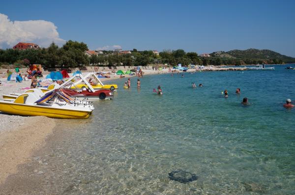 We offer to you big new house built in 2016 year. We have brand new 5 apartmants in center of Pakoštana. In our Jellow house we have 4. apartmants A2 2 for four person ( familly with two children ) and one big President apartment for 6. person. Each apartment have Free wi-fi, aircondition and parking. House is surrounded by walls so children can play. There is share grill in jard. Beach \ Janica \ is only 150m away from house and you need 1-2 minut walk by foot to rich. We have Restorant \ Lanterna \ in center of Pakoštane and our guest have discount of 10% on all. We can provide you breakfast and lunch or dinner in our restorant. For reservation you need to pay 30 % advance. We only rent saturday - saturday for period of 7 or 14 night