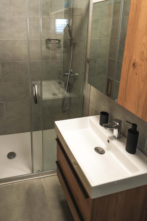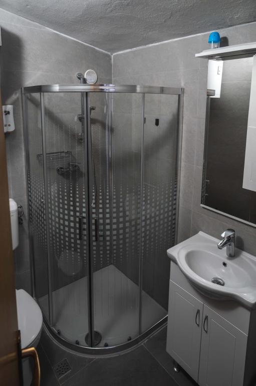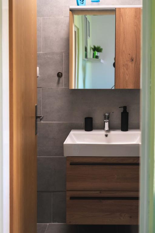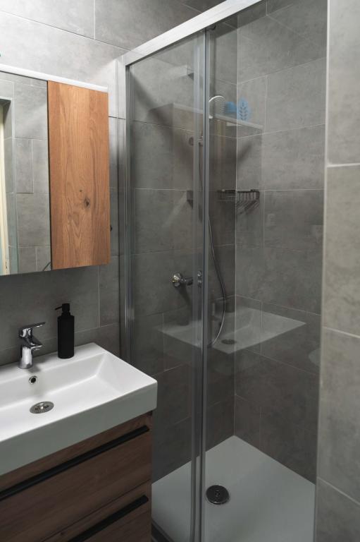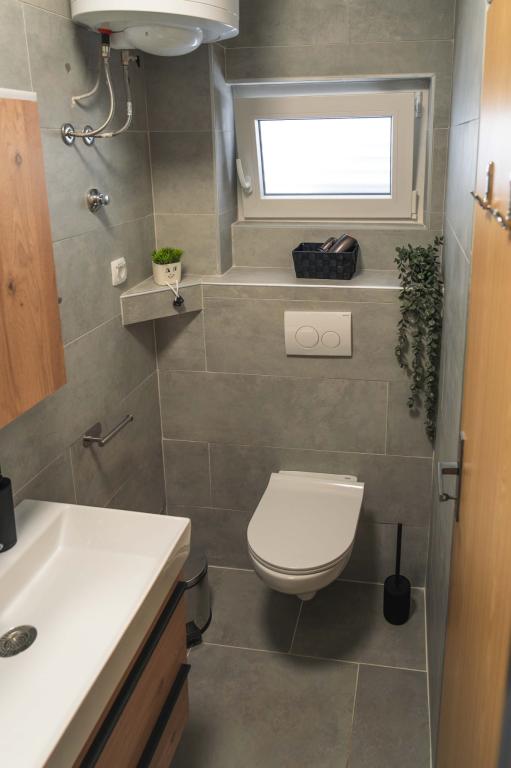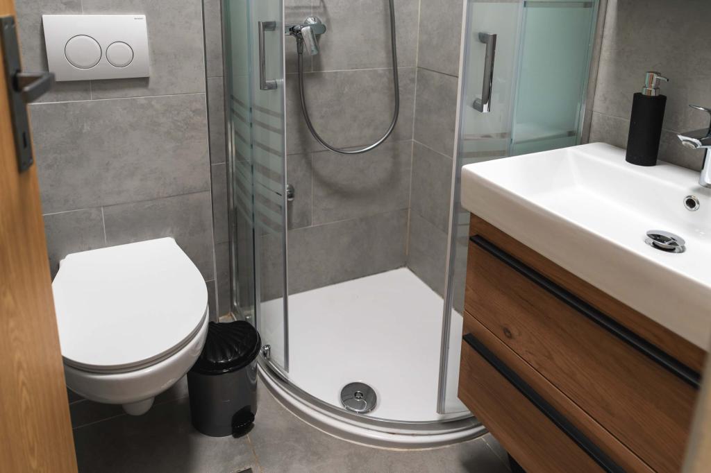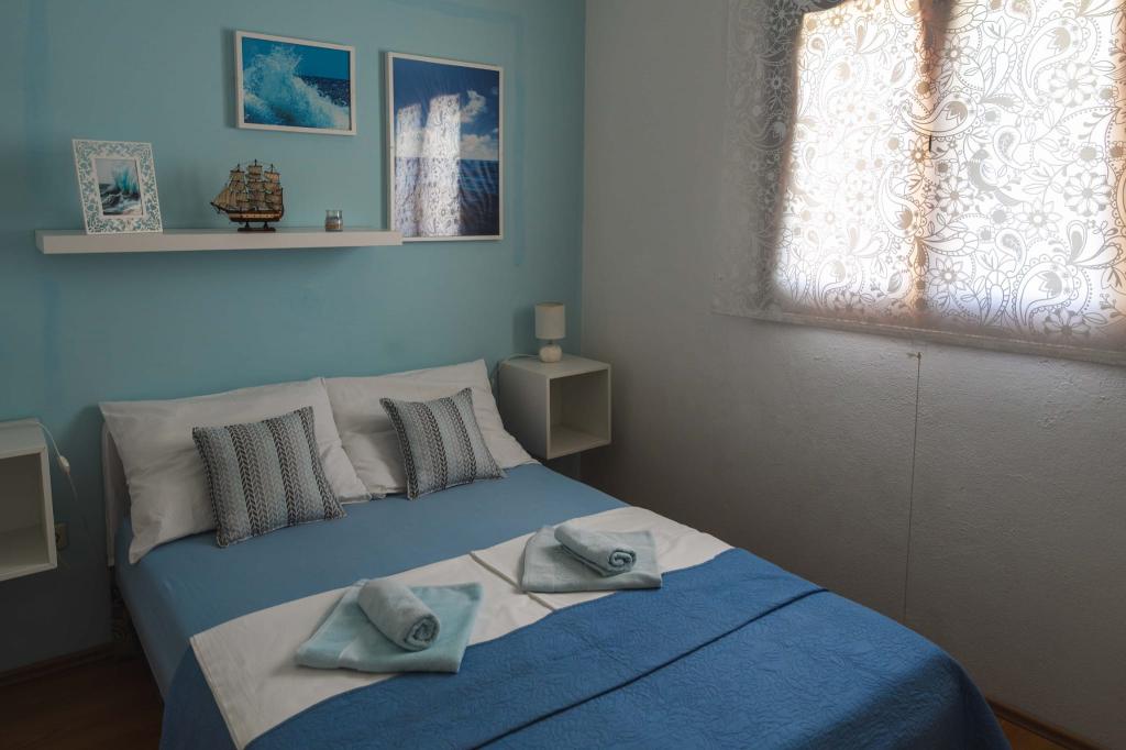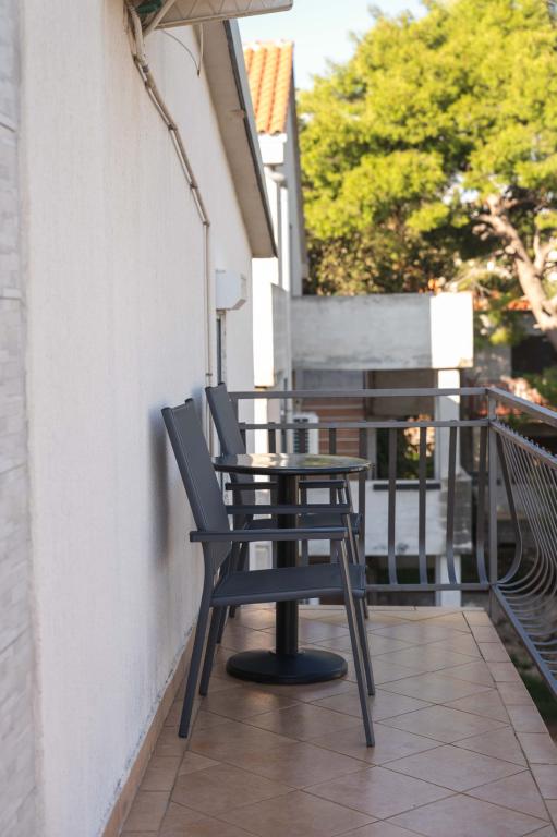Four APP (2 2) in a quiet part of Pakostane. APP consists of a bedroom where a double and triple closet. The living room has a bed (200x140), table with four chairs, and in one corner of the kitchen. The kitchen consists of sudopra, furnaces kuhanhe with oven and refrigerator. Apartment owns air conditioning and TV. In front of APP's terrace with a table and four chairs for your APP. APP is on the first floor of a private house. Two-bedroom apartments consist of two bedrooms, kitchen, dining room and bathroom with shower. The apartments have a large terrace overlooking the sea, air conditioning. TV. In the backyard barbecue children's swings and parking in the fenced area.