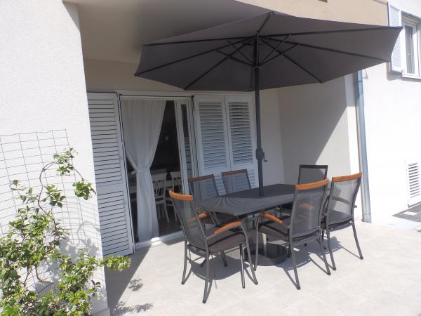 We had a wonderful stay in Sandra's apartment. The apartment is modern, very well equipped and tastefully decorated. From the terrace you can enjoy a small sea view very appreciable. This one is big enough to be comfortable during meals. The bedding is really comfortable. As far as we are concerned, we found that the situation was ideal because of the city center, so quiet, yet still close to it. Pakostane is a central city that and visit the region during many days. And besides, Sandra is a remarkable host. It's impossible to do better. We can only thank her from the bottom of our hearts for her welcome. We recommend without hesitation to all holidaymakers. Look no further than Sandra for a few days in this region. It's 20/20! We did not have the opportunity to say goodbye to her because she was away when we left, so we kiss her today for contributing to 6 wonderful vacation days.