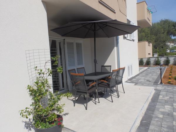 The new four apartments are fully and modernly equipped in a quiet and wooded area surrounding Pakoštane. They are located between Vransko Lake and the sea near the four national parks. The facility is a 10 minute walk to the beach, the center and all the major facilities. There is parking for each guest.