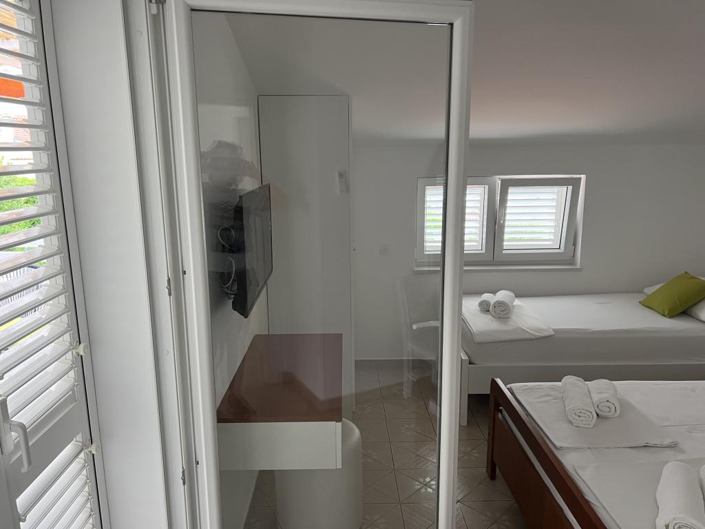 Fully furnished apartments near the city center in a quiet street, the second row of mora.Objekt is located 3 minutes walk to the city center and 5 minutes walk to plaže.Objekt has a lot of greenery and shade, and offers guests enjoy a spacious lawn terasama.Veliki suitable for play djece.Parking for cars in hladu.Turisti can use the grill in the backyard. The hosts are friendly and hospitable, and his experience of over 35 years in tourism guarantee our guests the best service.