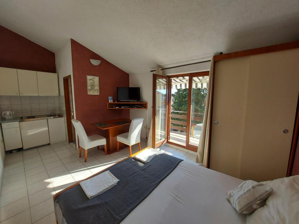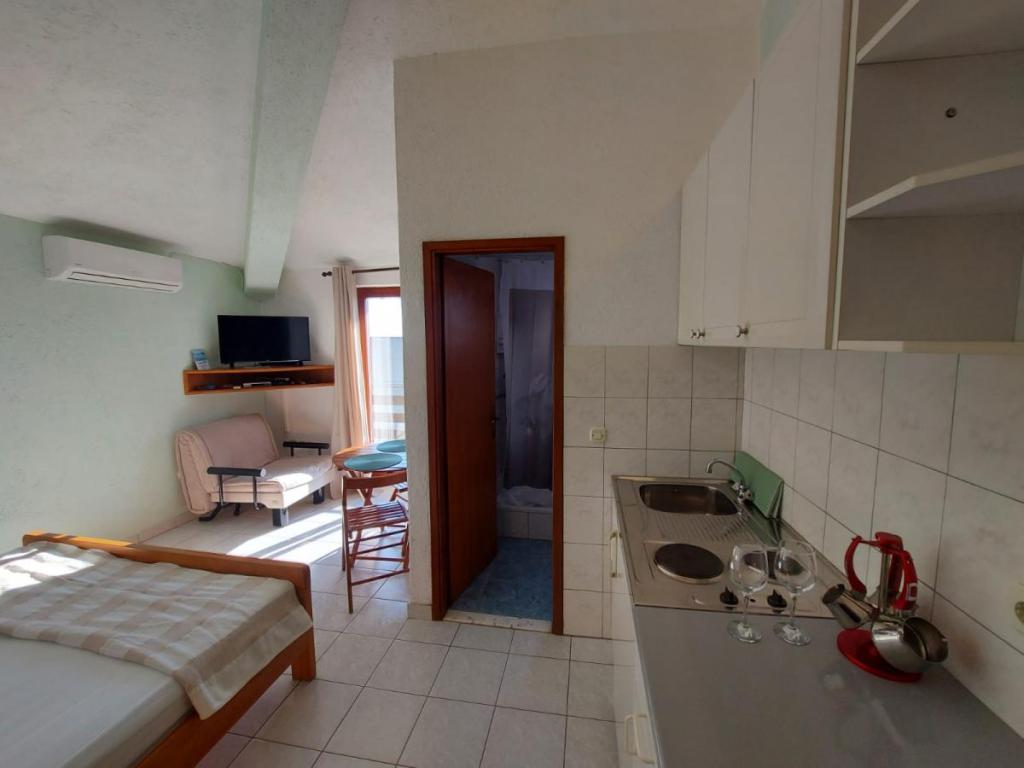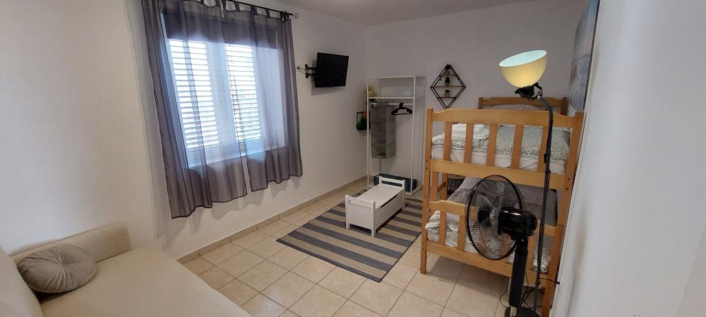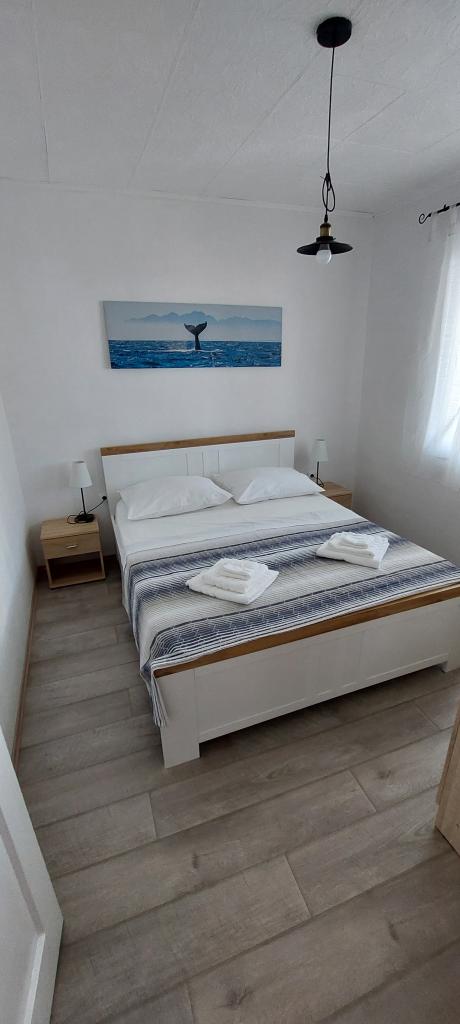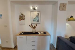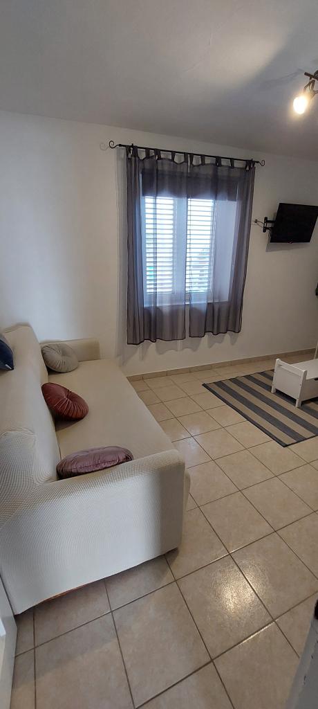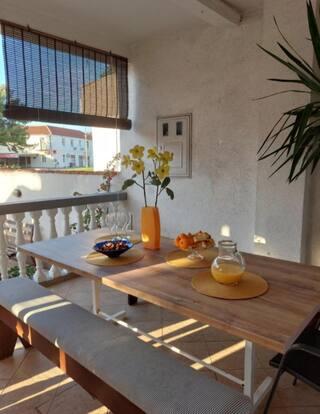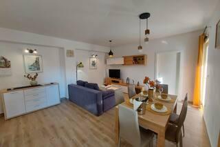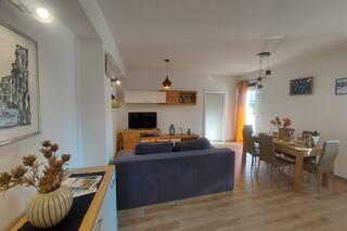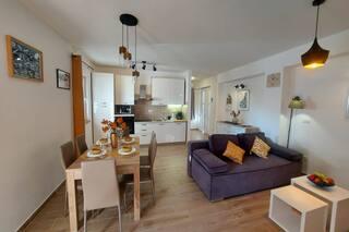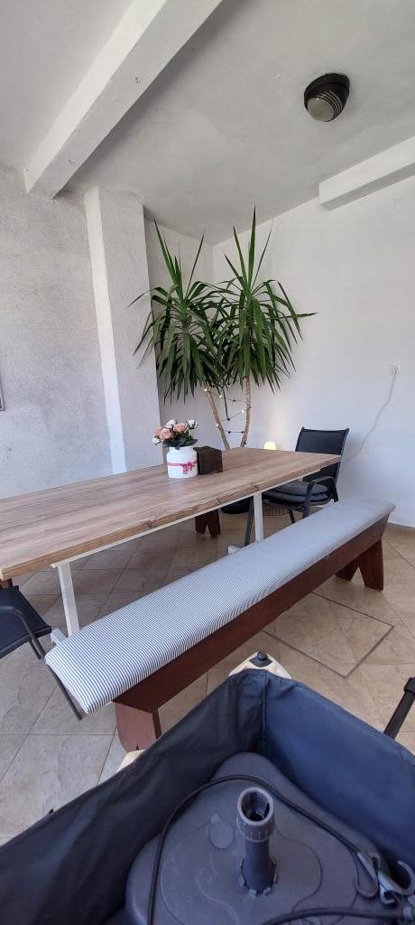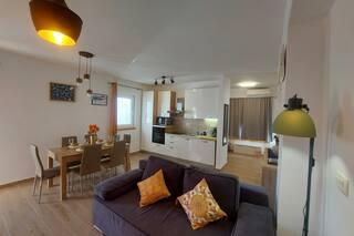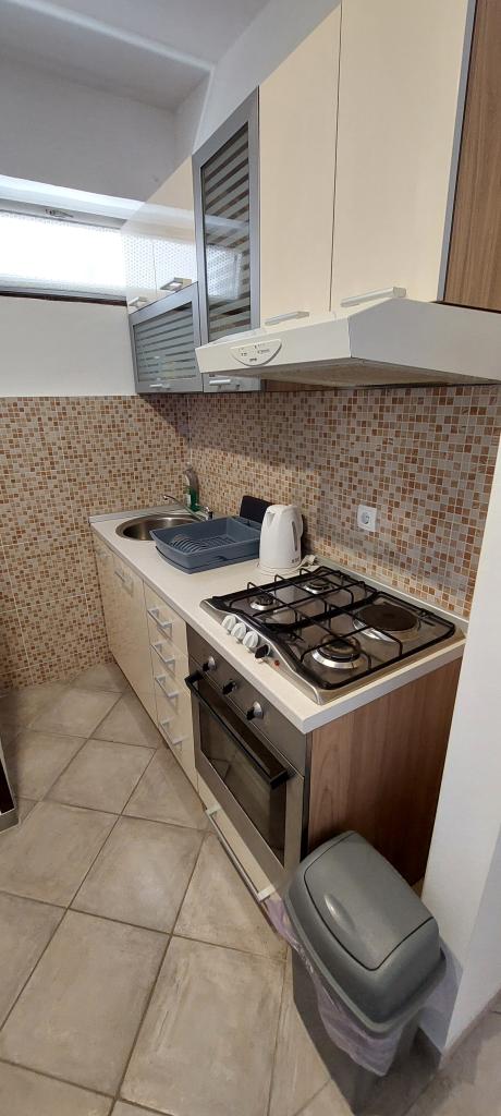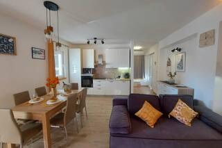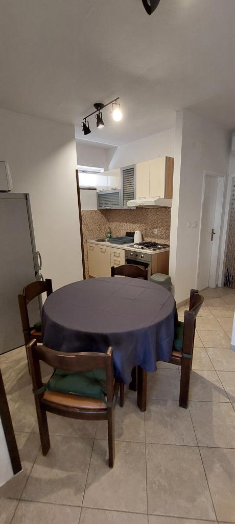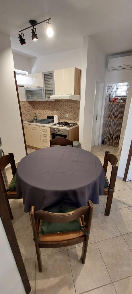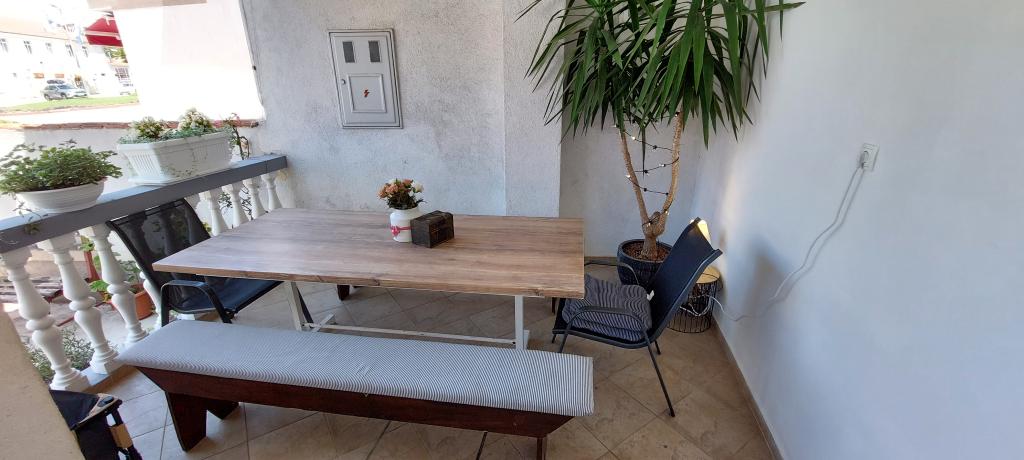 Newly decorated apartment, comfortable and cozy. It is located on the ground floor of the family house. It has two exits, one is to the yard where there is a vegetable garden, which you can use freely, there is also a barbecue with everything you need. The facility is located 3 minutes' walk to the sea and the town center. There is a shop and a coffee bar near the building. The apartment has one bedroom, one bathroom, a large living room with a sofa bed, a large table inside and a smaller table for sitting outside. Towels and bed linen are included in the price. Superbly equipped kitchen, toaster, coffee machine, kettle, everything you need for cooking and all the necessary dishes for grilling, the grill is in the yard. Parking is free and is located within the building. We provide all other information upon your request.