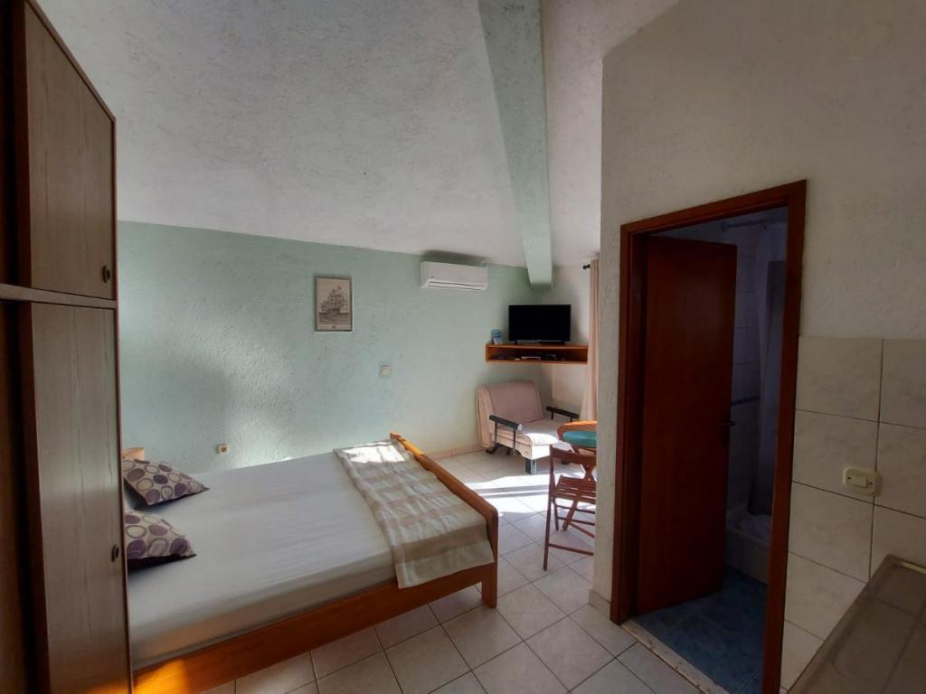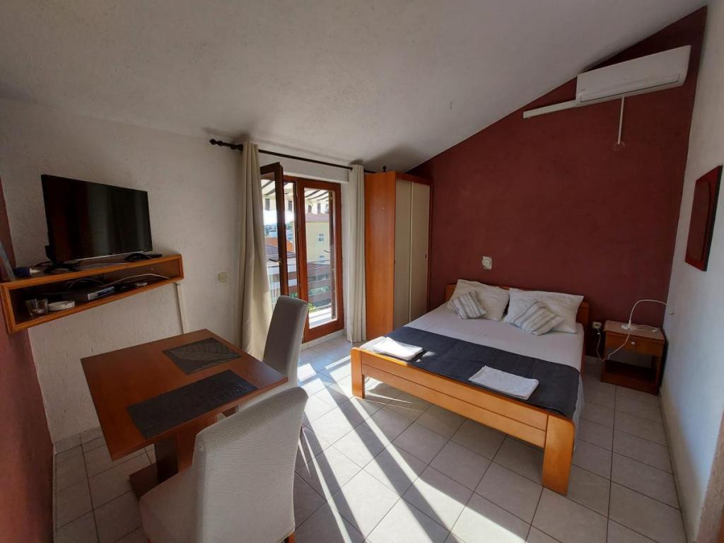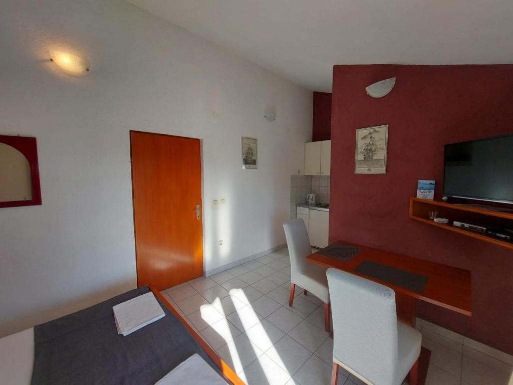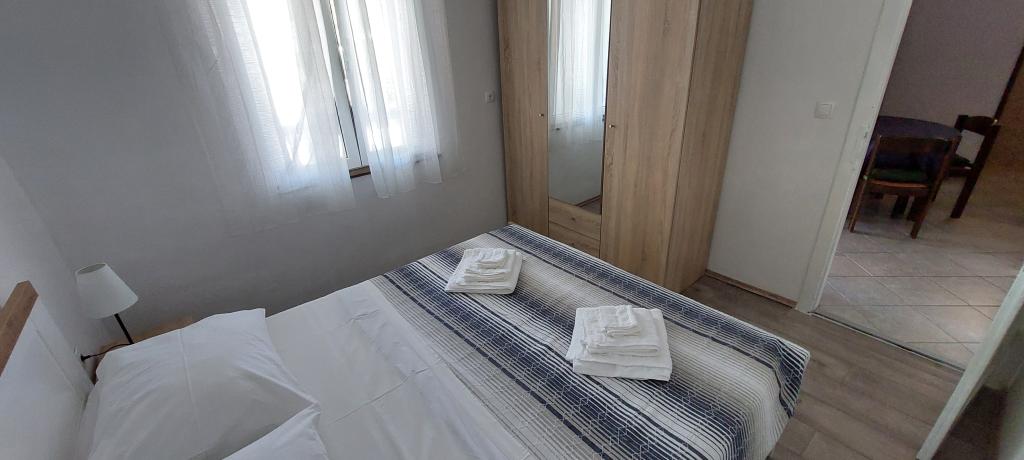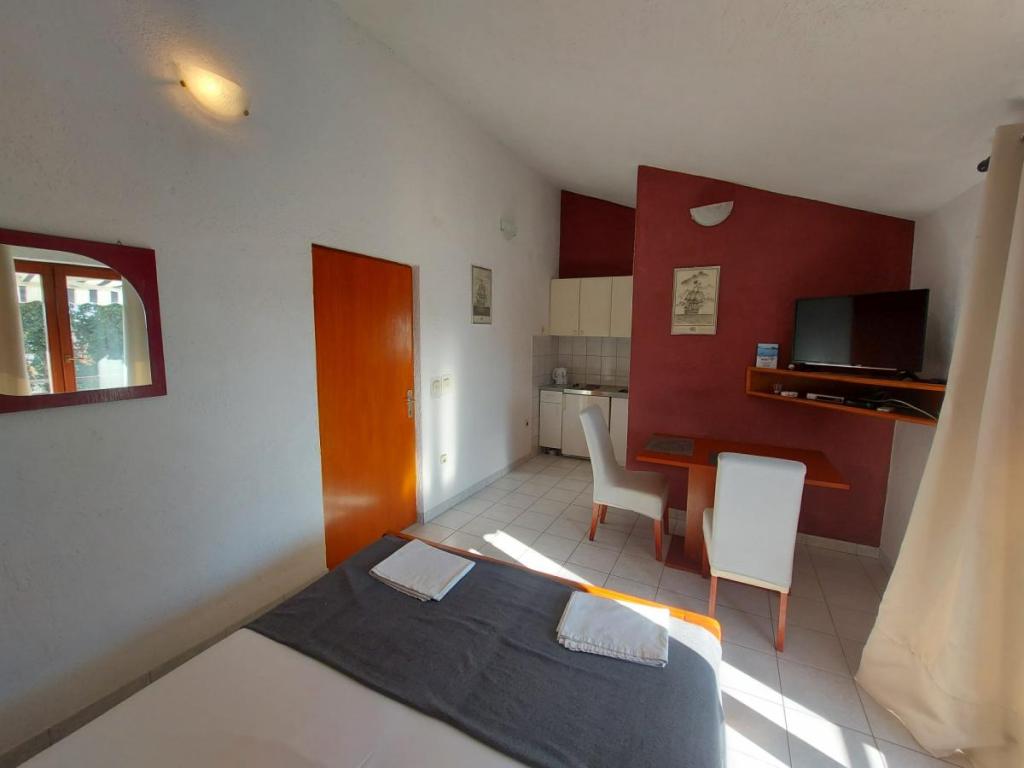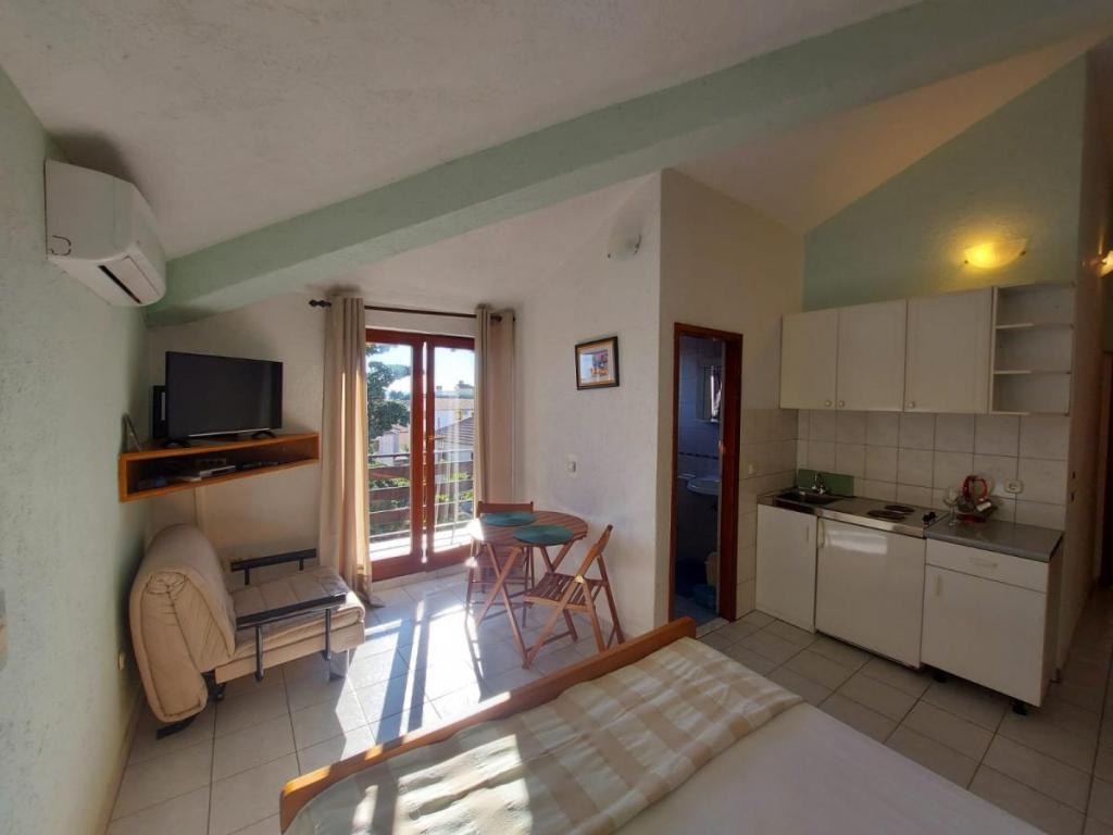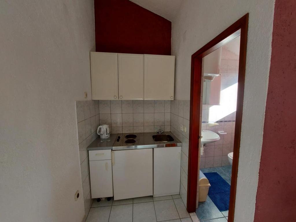 Newly decorated apartment, comfortable and cozy. It is located on the ground floor of the family house. It has two exits, one is to the yard where there is a vegetable garden, which you can use freely, there is also a barbecue with everything you need. The facility is located 3 minutes' walk to the sea and the town center. There is a shop and a coffee bar near the building. The apartment has one bedroom, one bathroom, a large living room with a sofa bed, a large table inside and a smaller table for sitting outside. Towels and bed linen are included in the price. Superbly equipped kitchen, toaster, coffee machine, kettle, everything you need for cooking and all the necessary dishes for grilling, the grill is in the yard. Parking is free and is located within the building. We provide all other information upon your request.