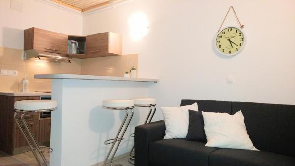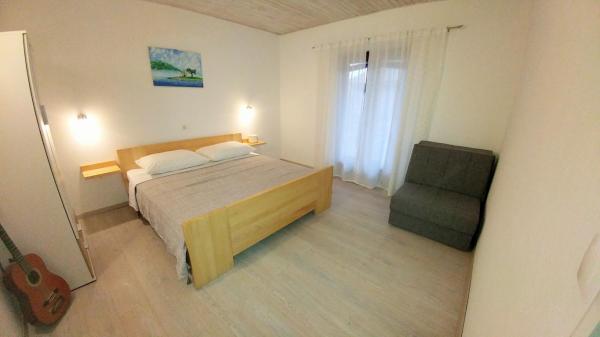 The house has a total of two new and modernly equipped apartments on the ground floor. Each has a bedroom with a double bed and extra beds. For additional enjoyment of your holiday, guests also have a terrace with seating and a barbecue. For all guests there is a private parking and free wireless internet access. Apartment Studio is an independent stone house located in the street of King Petar Svačić. Due to the distance of the apartments from the center of the place and the beach, the host provided all its guests with daily parking tickets valid for Pakoštane.