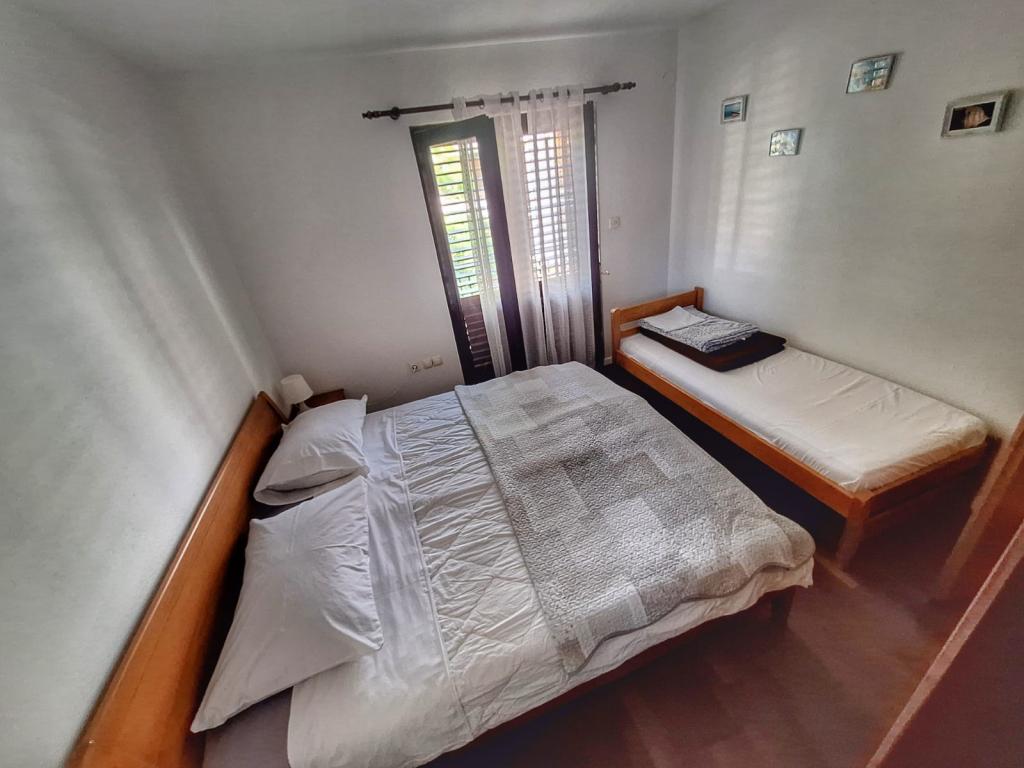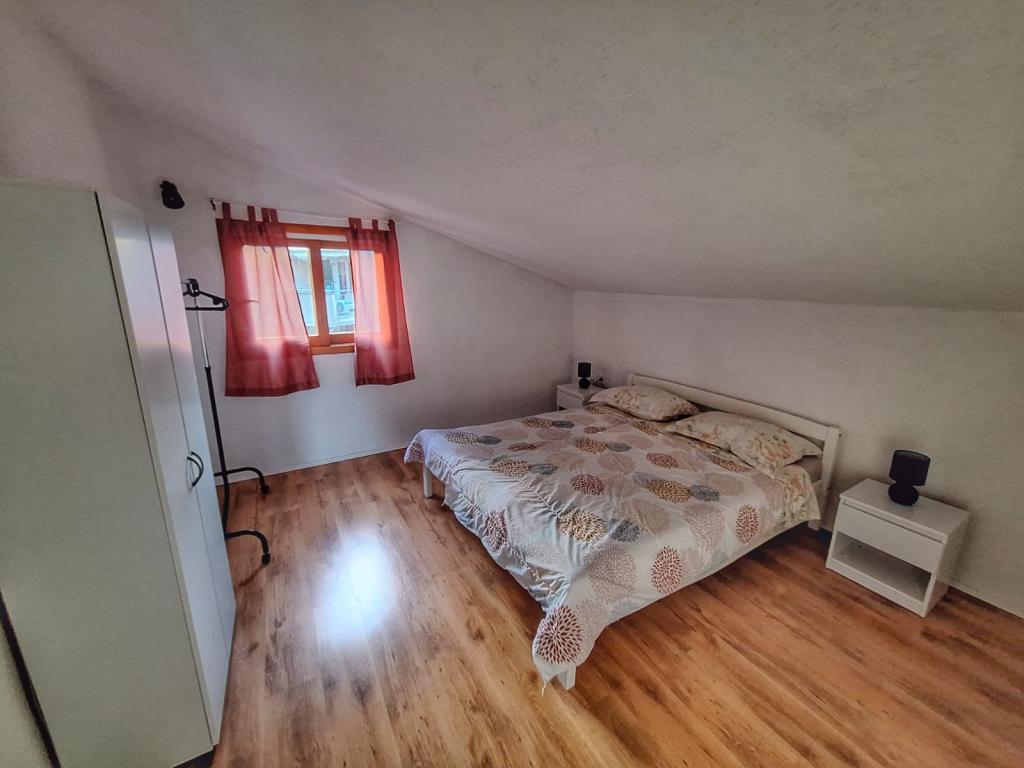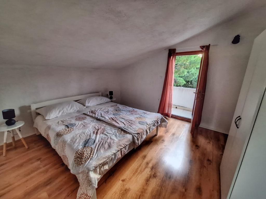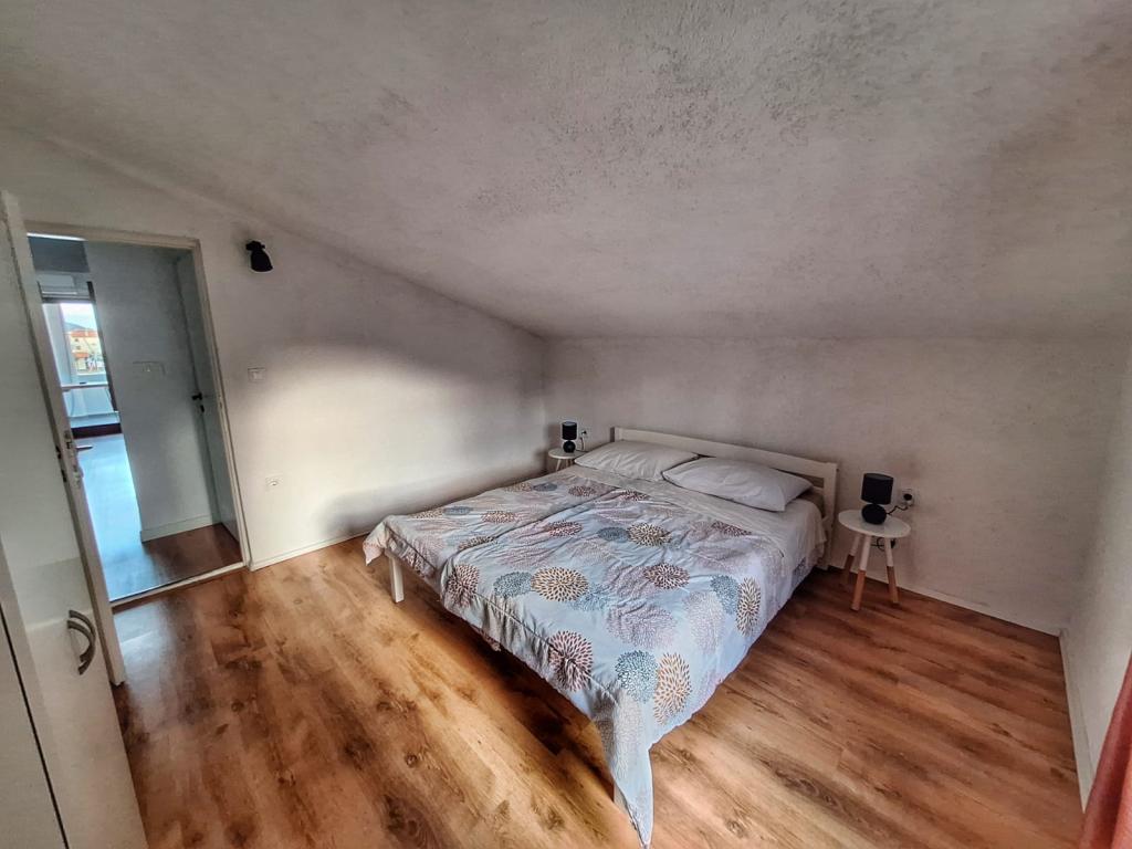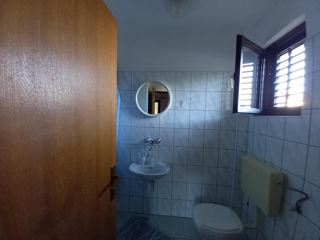 The house is located in the center of Pakoštan. It is a few minutes' walk to the town center and the beach. There are two 50 m2 apartments in the house and they are located on the first floor of the house. The apartment consists of a kitchen with a dining room, a bedroom and a bathroom. The bedroom has a double bed and one extra bed, also another extra bed in the kitchen/living room. The kitchen is equipped with basic kitchen appliances and basic kitchen utensils. There is a parking space in the yard of the house (protected from the sun). Wi-Fi is included in the accommodation price!