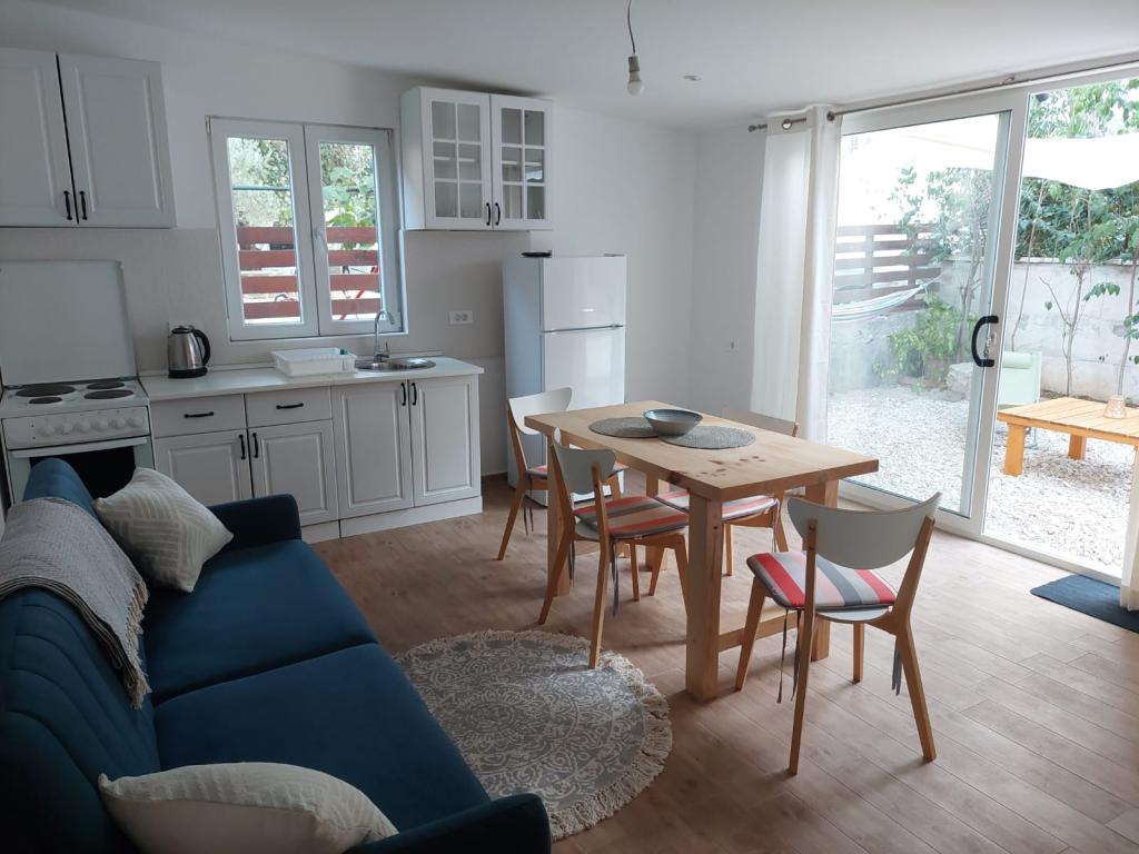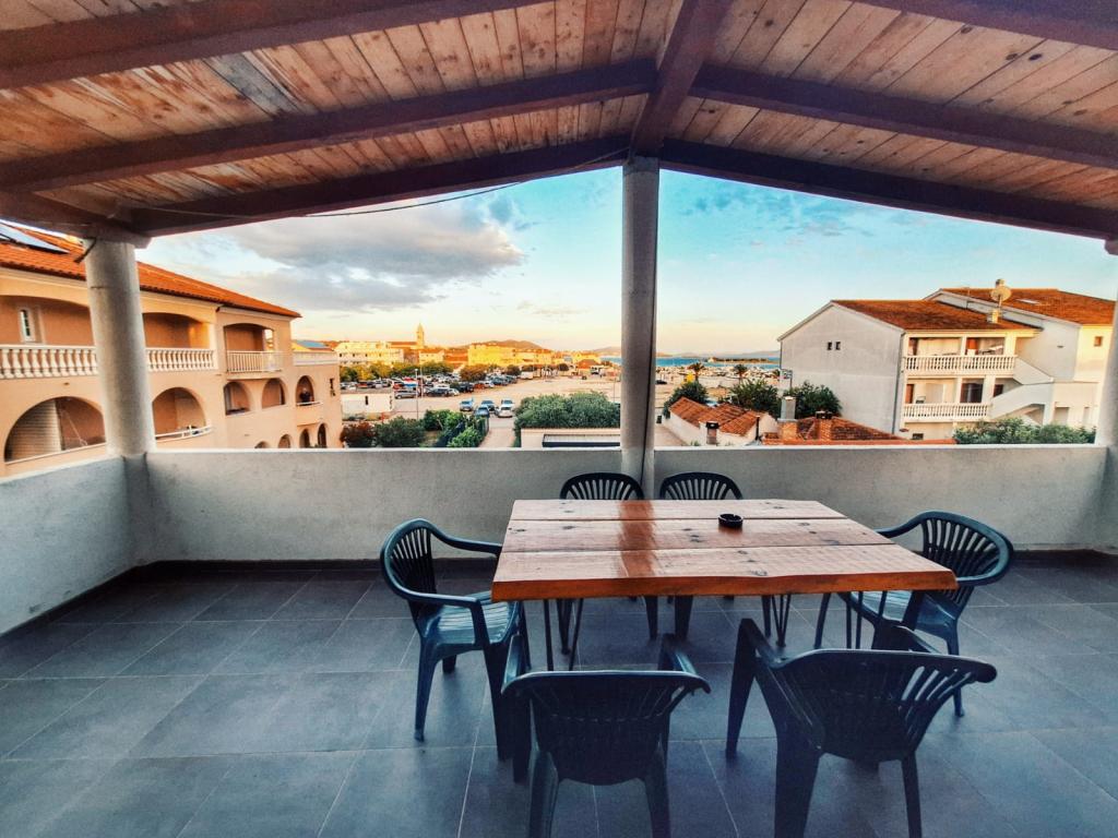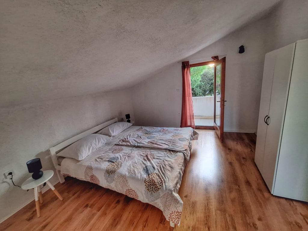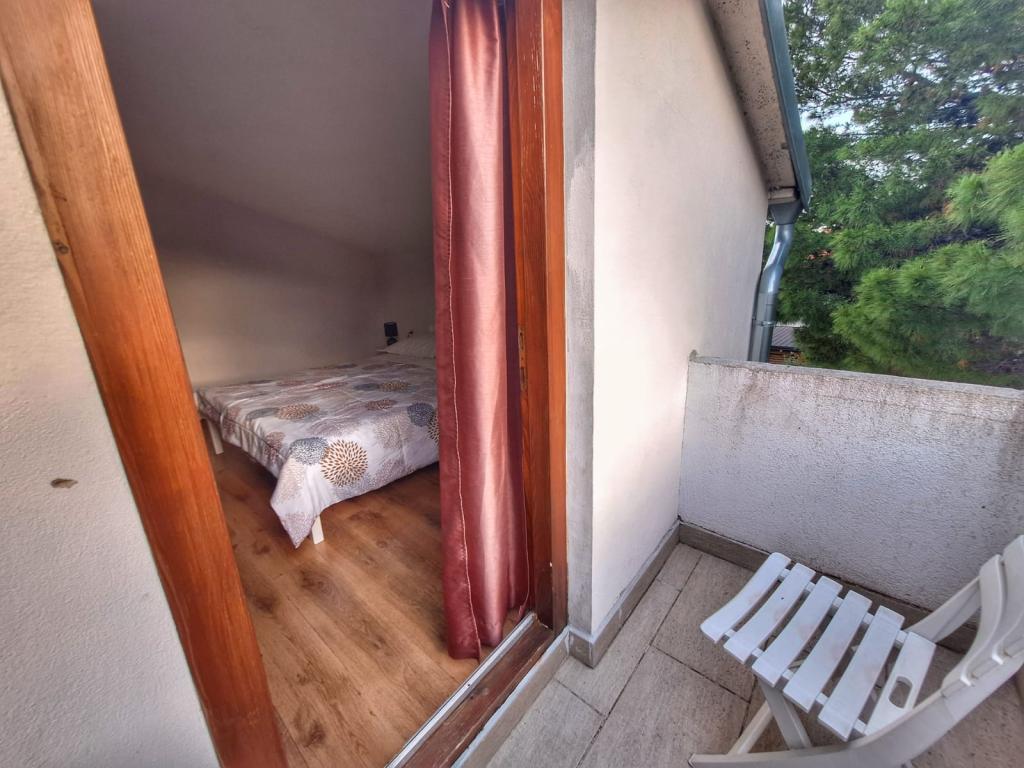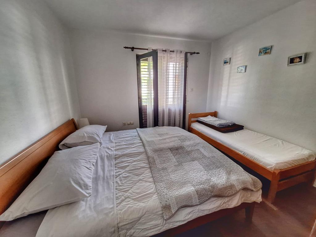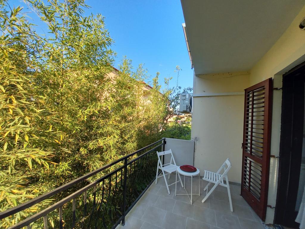 The house is located in the center of Pakoštan. It is a few minutes' walk to the town center and the beach. There are two 50 m2 apartments in the house and they are located on the first floor of the house. The apartment consists of a kitchen with a dining room, a bedroom and a bathroom. The bedroom has a double bed and one extra bed, also another extra bed in the kitchen/living room. The kitchen is equipped with basic kitchen appliances and basic kitchen utensils. There is a parking space in the yard of the house (protected from the sun). Wi-Fi is included in the accommodation price!