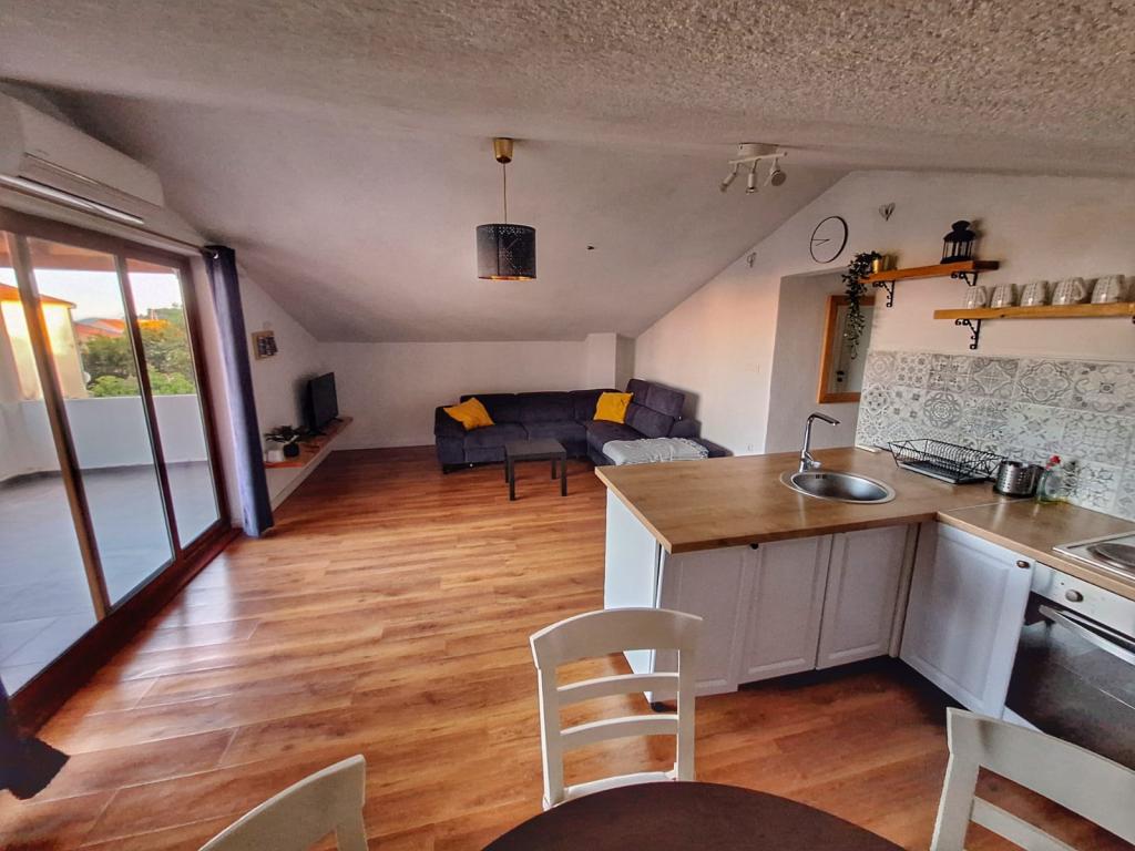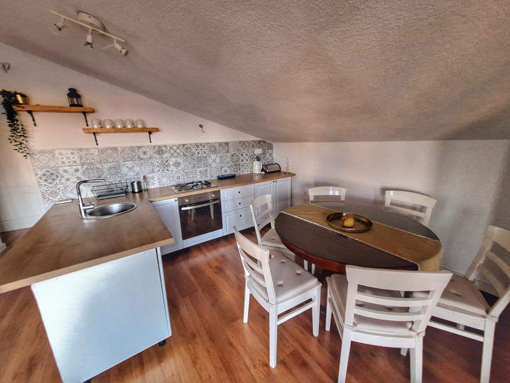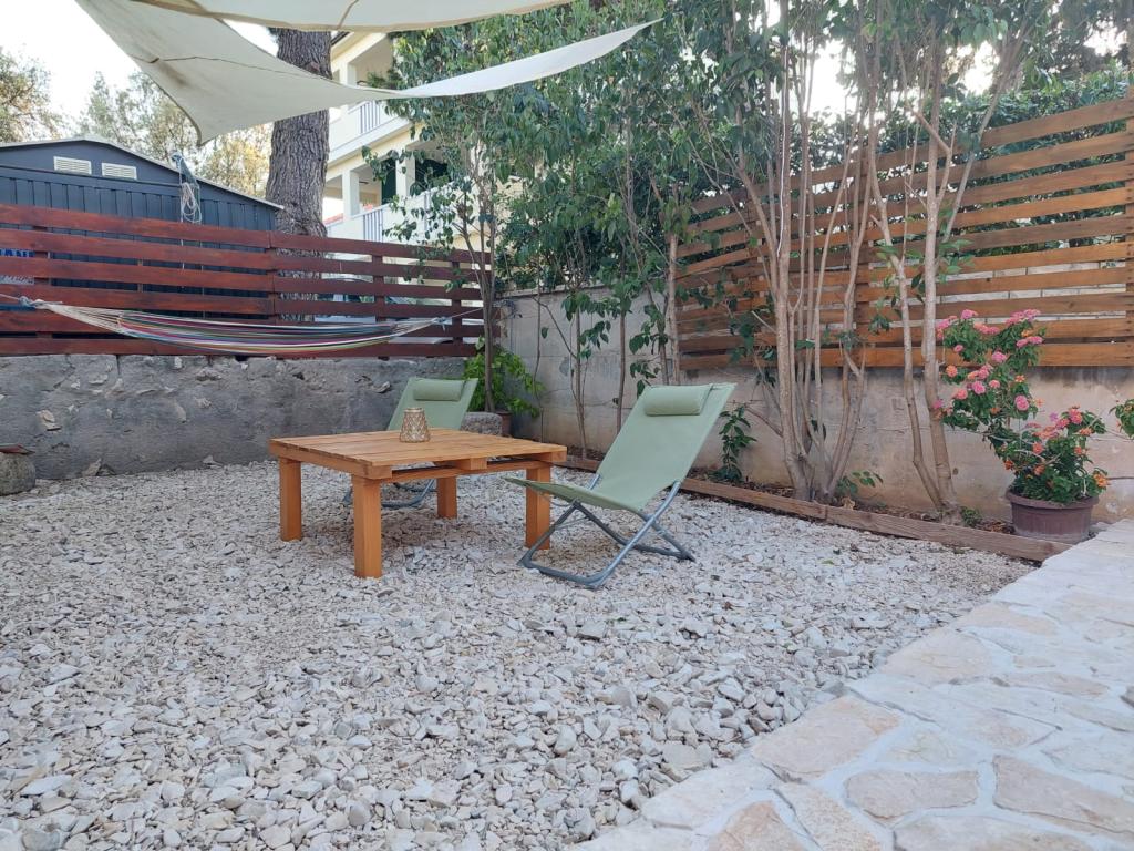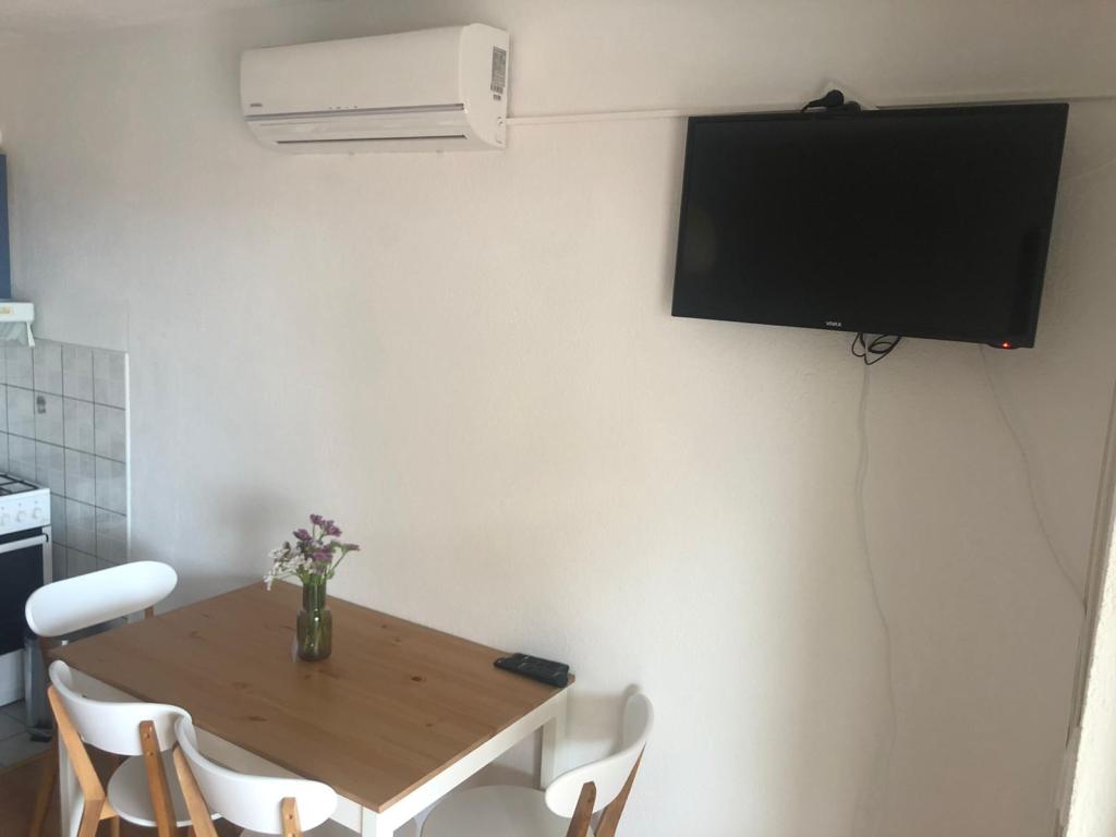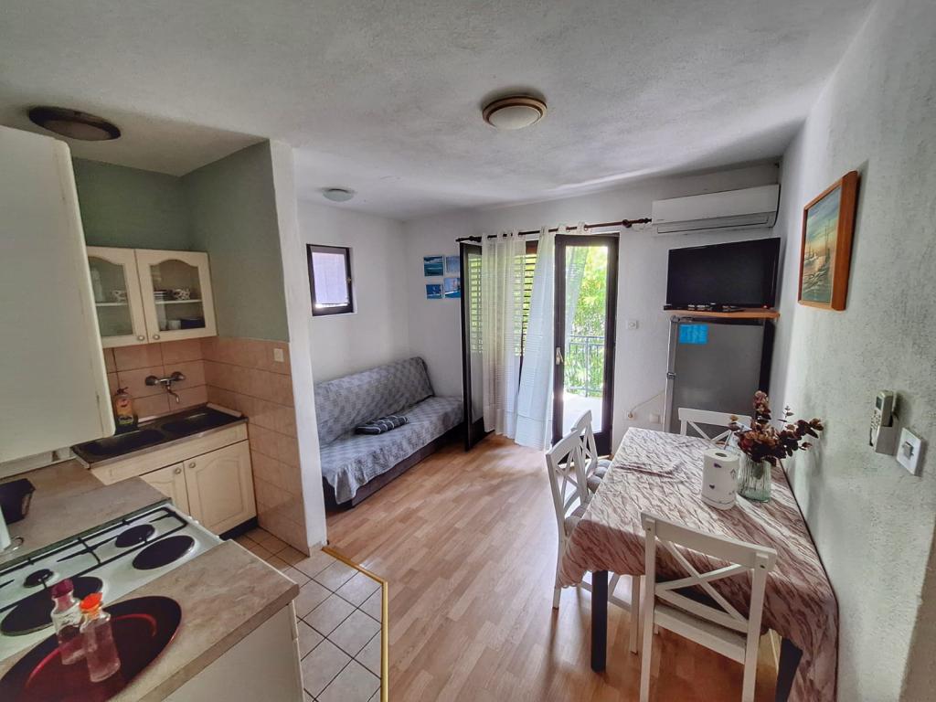 The house is located in the center of Pakoštan. It is a few minutes' walk to the town center and the beach. There are two 50 m2 apartments in the house and they are located on the first floor of the house. The apartment consists of a kitchen with a dining room, a bedroom and a bathroom. The bedroom has a double bed and one extra bed, also another extra bed in the kitchen/living room. The kitchen is equipped with basic kitchen appliances and basic kitchen utensils. There is a parking space in the yard of the house (protected from the sun). Wi-Fi is included in the accommodation price!
