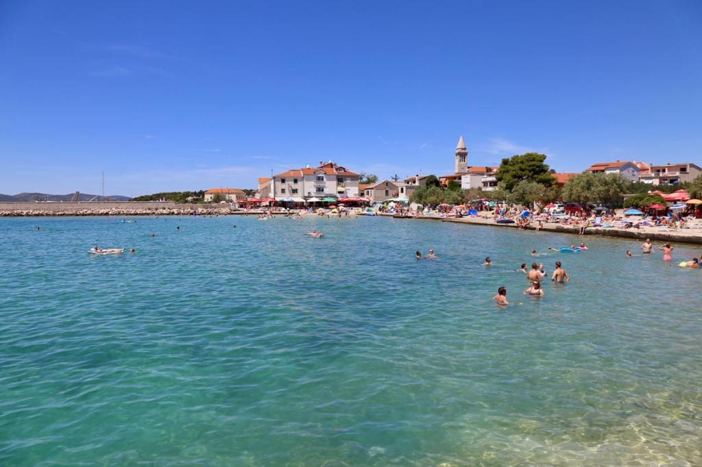Fully equipped apartments near the center of town. The facility is located a 5-minute walk from the center and the beach. Bus station, tourist board, clinic, restaurant, coffee bar, shops and bakery are within 50 meters. In a beautiful environment and pleasant ambience, here you will find everything you need for your perfect vacation in Pakoštani. The apartments are comfortable and offer accommodation for 2 to 11 people in a total of 2 apartments. Each apartment has a balcony. The facility has a lot of greenery, lawn and shade and offers guests the enjoyment of a large yard suitable for children to play. They are ideal for staying with family, children and friends. Parking for cars is provided inside the building, in the shade. Tourists can use the grill in the yard.