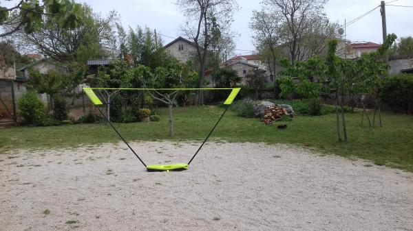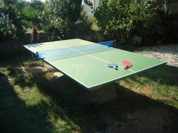 We have a garage for bicycles, equipment for children's games such as table tennis, badminton, darts, children's pushchairs, romobiles, bicycles... Outdoor grill and seating furniture in the shade next to the grill and on the lawn. We offer homemade olive oil and brandy.