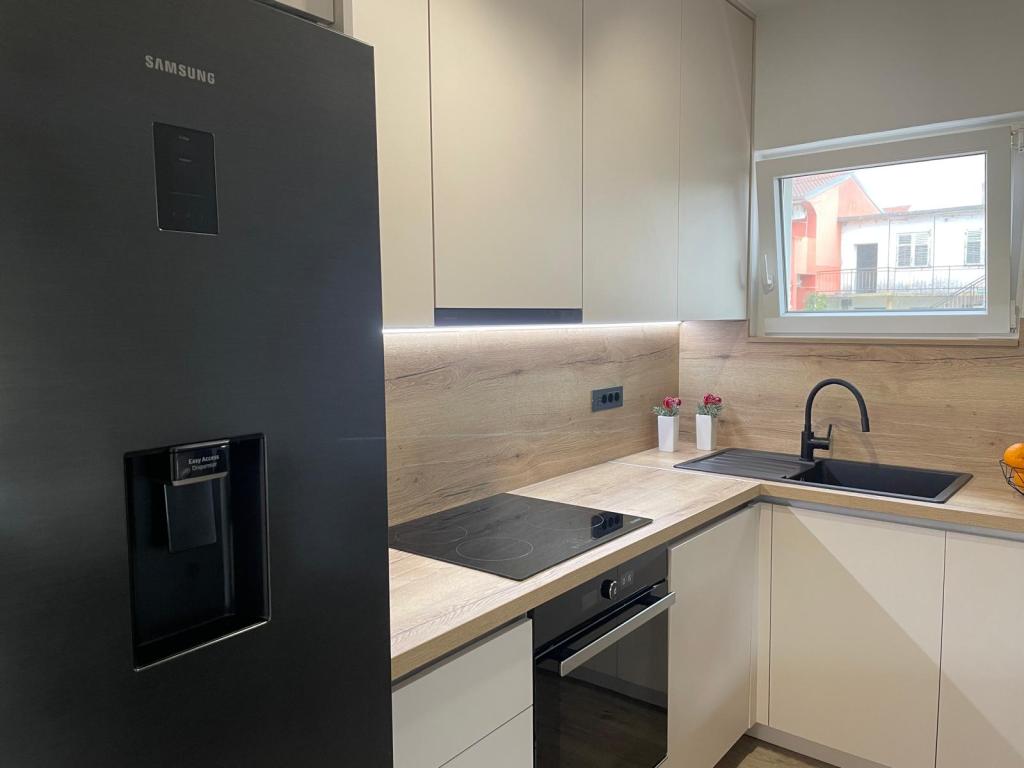 Fully equipped apartments in a quieter part of town with secured parking. The facility is located 500 meters from the center and the beach