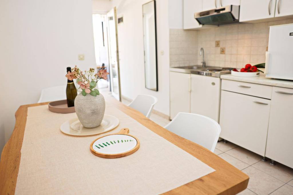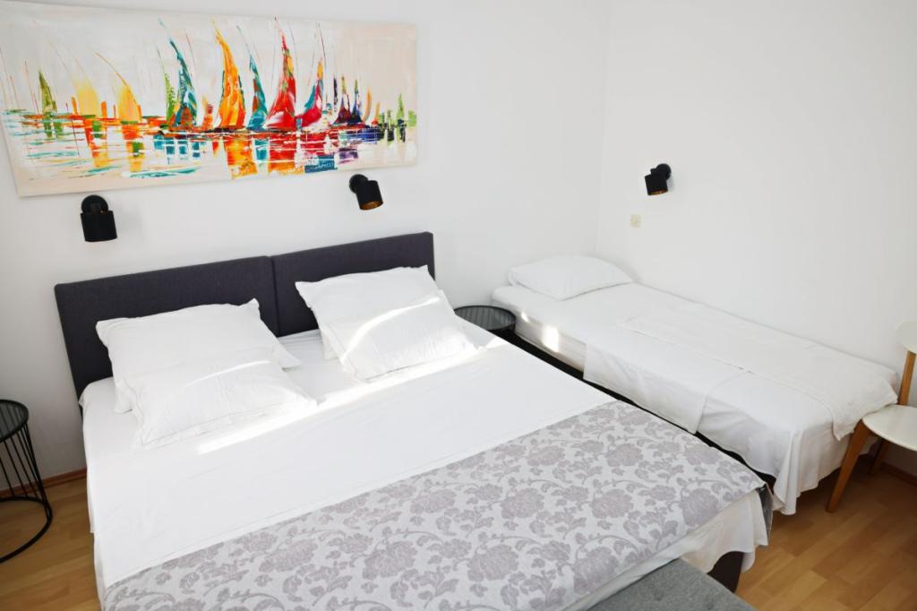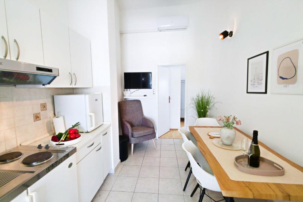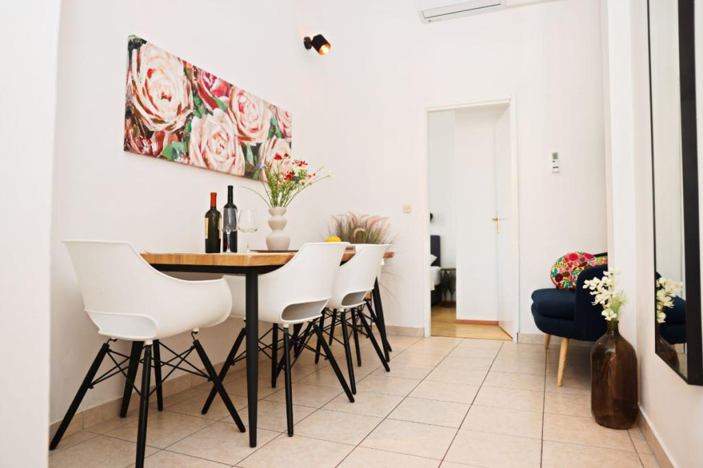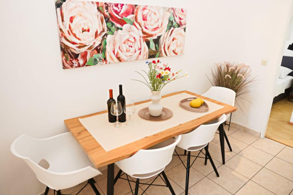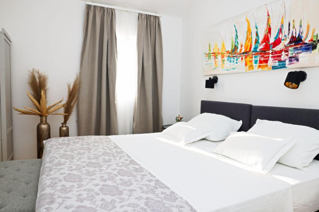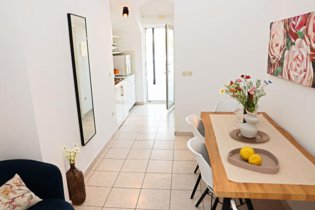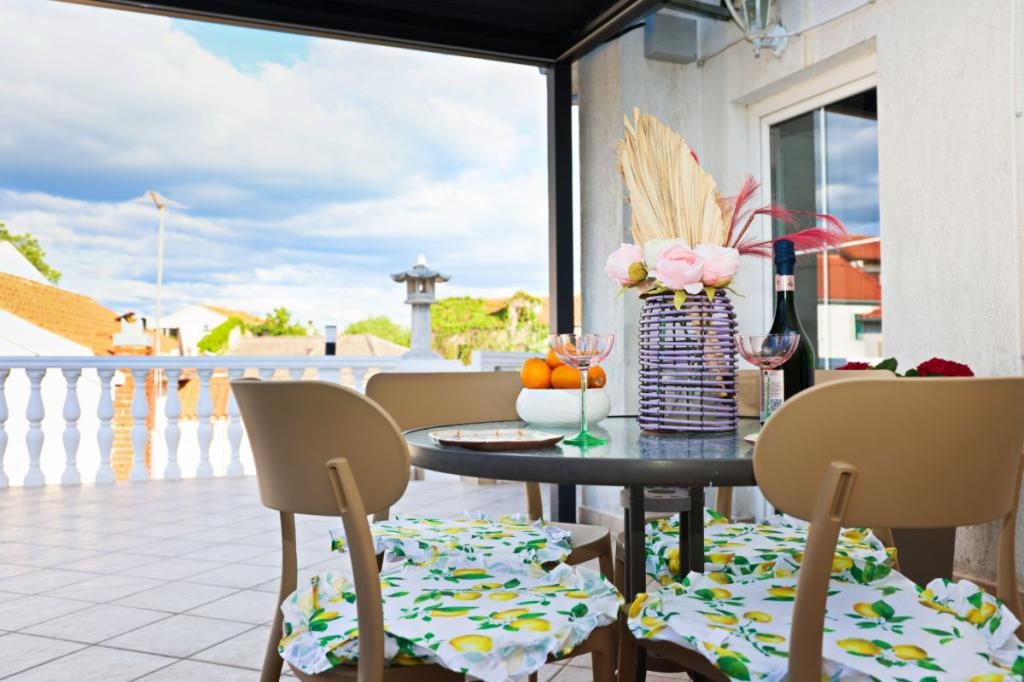 Apartments Tri Ferala are located in the very center of Pakoštane, a few steps from the main square, shops, cafes, restaurants and fish market. The apartments are located above the famous Tri Ferala restaurant, offering peace, privacy and comfort, while the terraces overlook the picturesque streets of Pakoštane. Janice Beach, a favorite among locals and tourists, is just 300 meters away. If you are looking for accommodation that offers comfort, a convenient location and an authentic Dalmatian experience, Apartments Tri Ferala is an excellent choice. Please send your inquiries only via the contact form. The price list is up-to-date and correct.