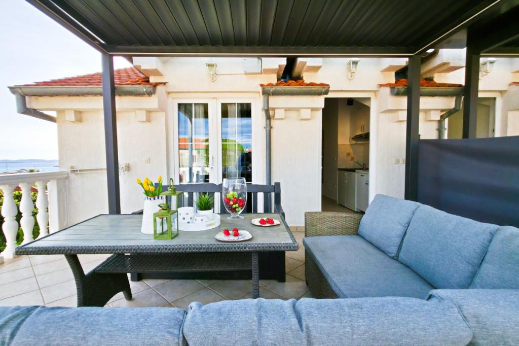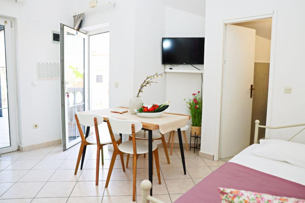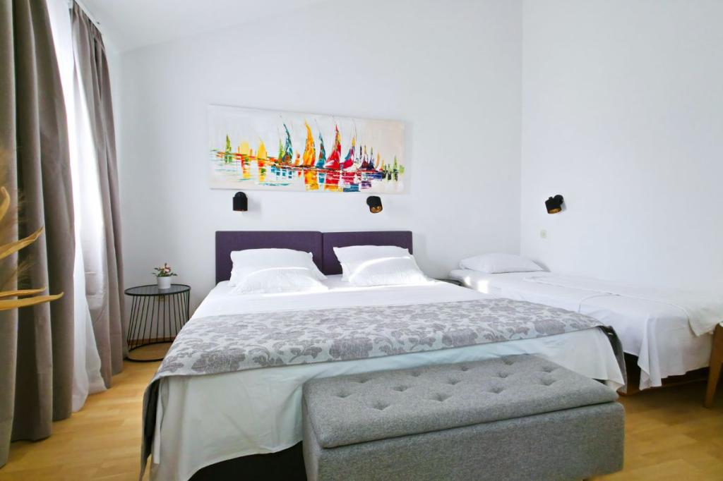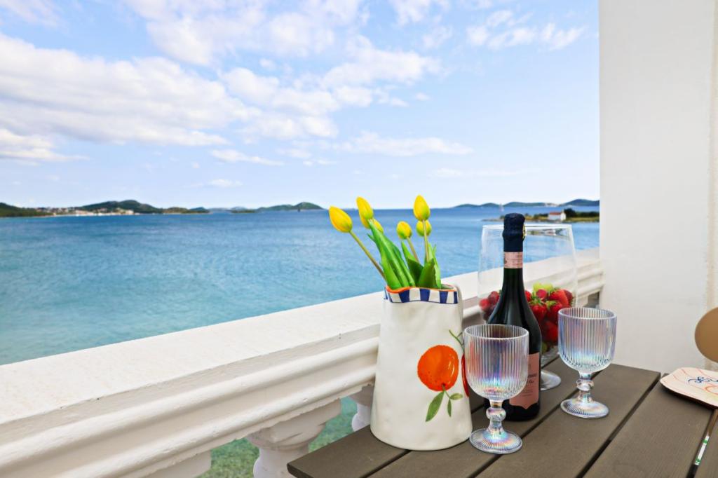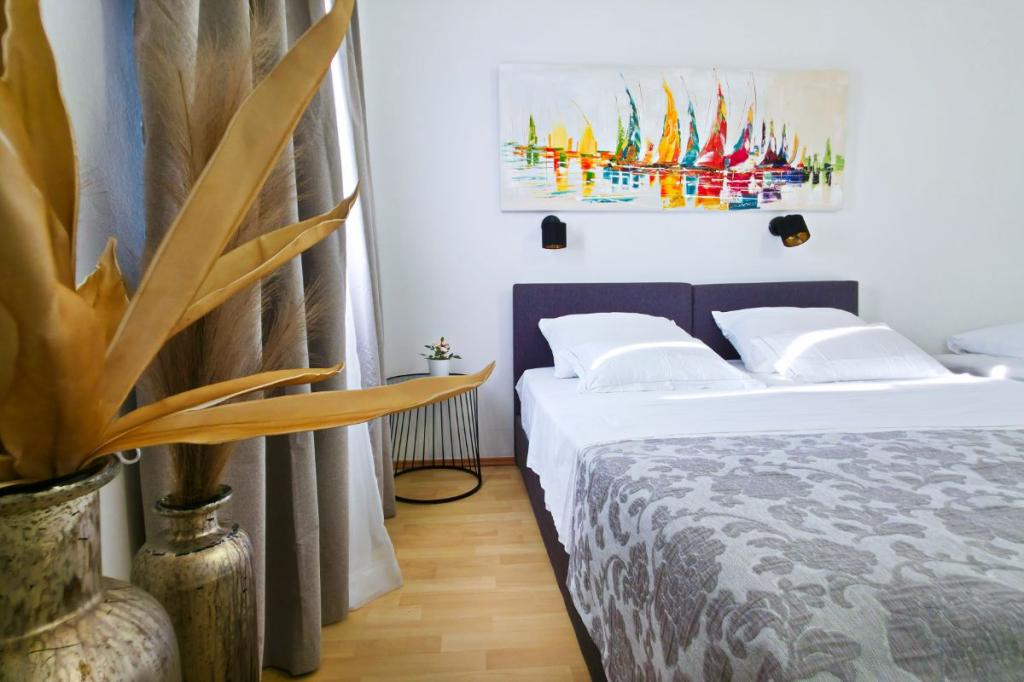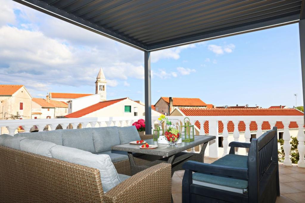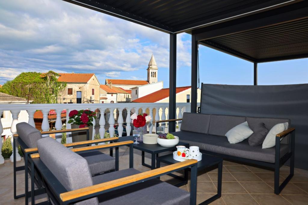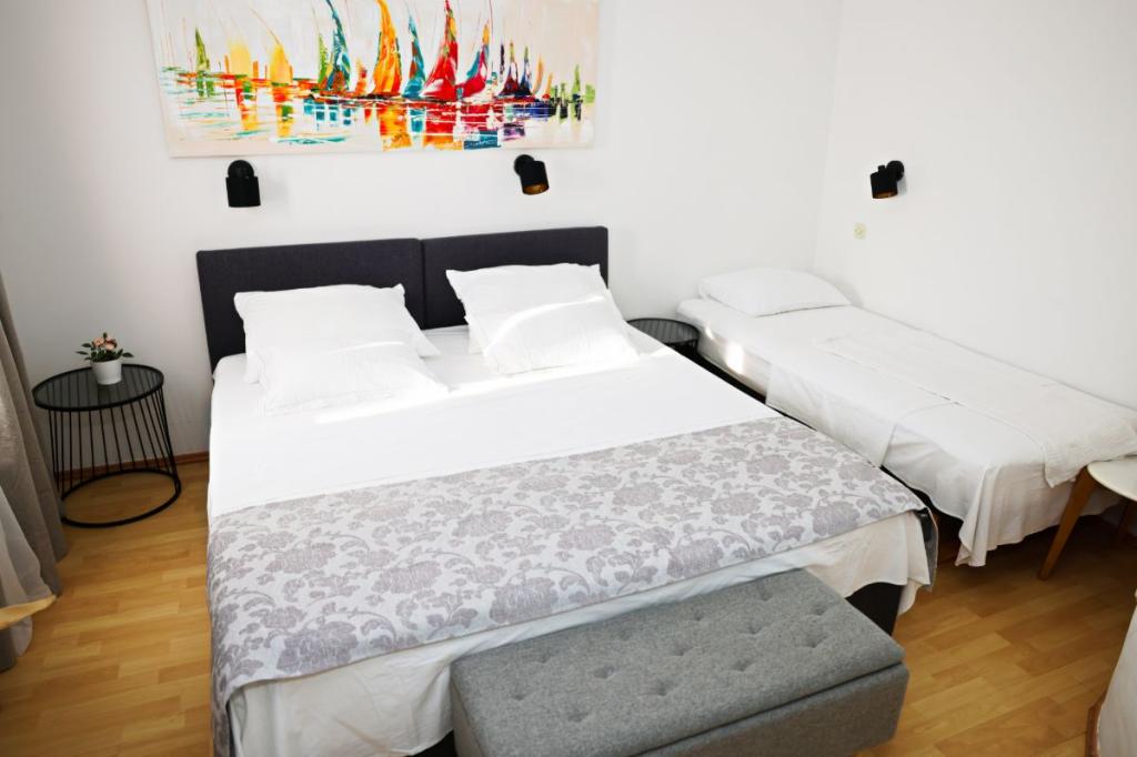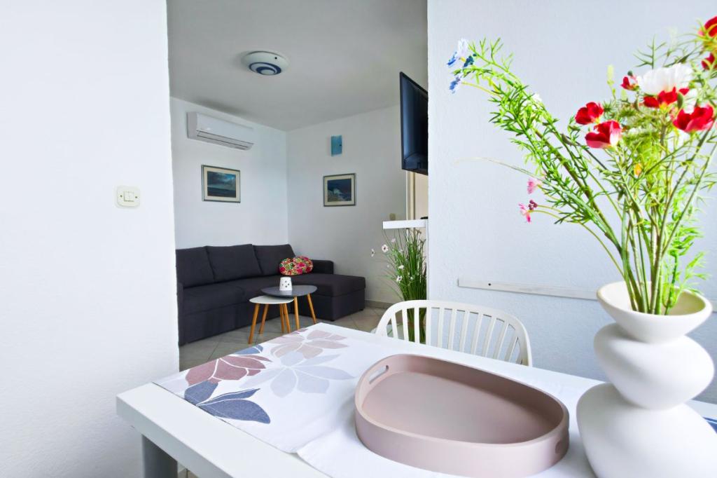 Apartments Tri Ferala are located in the very center of Pakoštane, a few steps from the main square, shops, cafes, restaurants and fish market. The apartments are located above the famous Tri Ferala restaurant, offering peace, privacy and comfort, while the terraces overlook the picturesque streets of Pakoštane. Janice Beach, a favorite among locals and tourists, is just 300 meters away. If you are looking for accommodation that offers comfort, a convenient location and an authentic Dalmatian experience, Apartments Tri Ferala is an excellent choice. Please send your inquiries only via the contact form. The price list is up-to-date and correct.