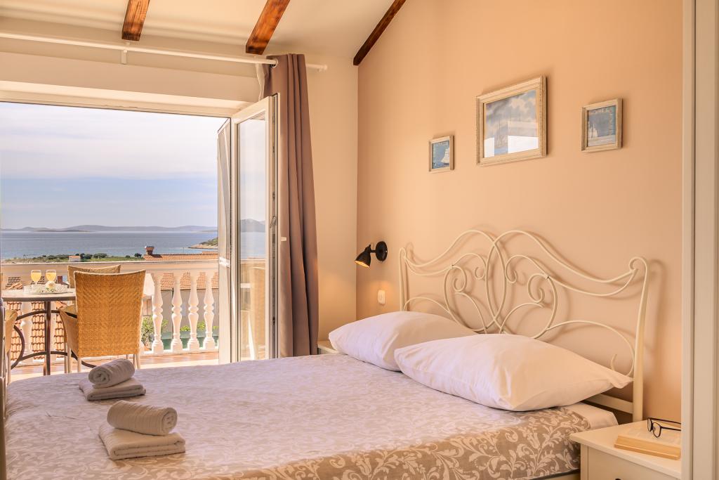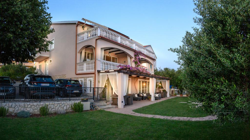 Villa Krpeta is located in Pakoštane in a quiet location above the main beach and near the center where all amenities are located. The access to the house is arranged, parking spaces are provided, the apartments have separate entrances, they are newly renovated, all have air conditioning, each apartment has free wireless internet, LCD or smart TV and satellite channels, all balconies are oriented south and have a view of the sea and islands, a grill and a washing machine are always available.