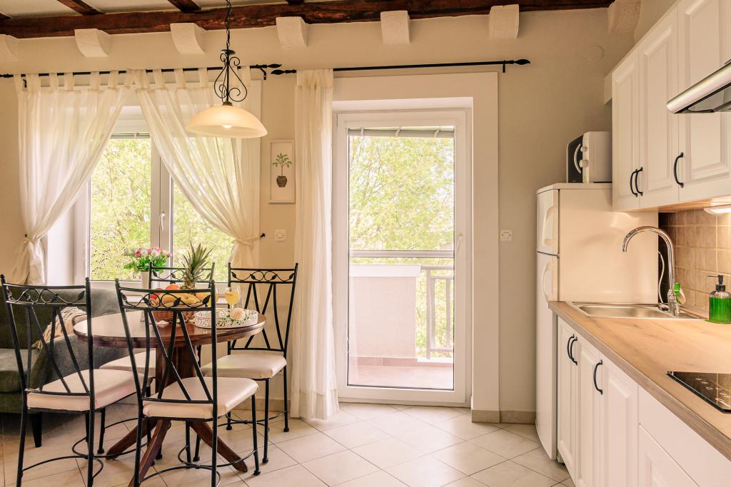 The accommodation is located very close to the coast, beach, and city center, with minimal elevation. The accommodation itself is new, modern, spacious and very cozy furnished. The neighborhood is quiet. We went with a family of 6, complete kitchen, dishwasher. A washing machine is not available separately in the apartment, but shared with other apartments for rent. The host family is a very nice, helpful, lovable family, they speak excellent English and German. They live on the ground floor and are available at any time. Comfortable big beds, great bathrooms. Parking was perfectly arranged, we went with two cars. The beach is pebbled and deepens well. Water is clean and not too salty. The beach is not crowded, it was never a problem to find a suitable place as soon as we got down. ...so we didn't have to go down to the beach early in the morning, just to have a place later. You can also see the open sea. Small town is very cozy. There is a CBA-Tesco-like store, Plodine, very close, but there is a good fruit and vegetable store and a bakery quite close around the corner. Highway takes you very close. Conveniently accessible. There are many excursion opportunities in the area, boating, hiking, cycling, the owners will help you organize them.