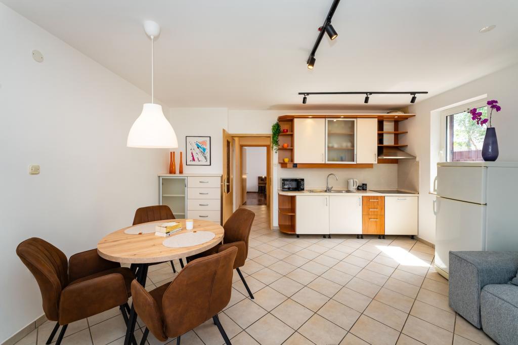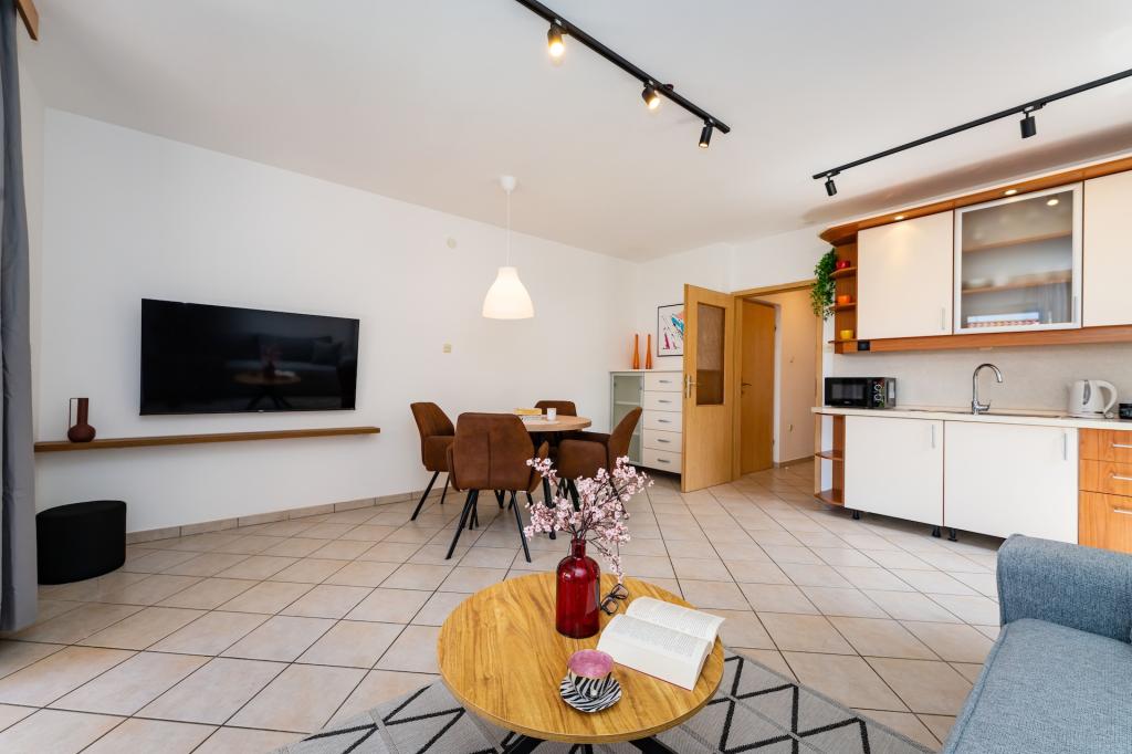 Read more Accommodation unitsFor all apartments, the maximum number of people is 4. One parking space is provided per apartment in our parking lot. Small dogs are allowed, but with prior notice and upon request. Entry to the apartments is possible from 2:00 p.m. on the day of arrival. Please leave the apartment by 10:00 a.m. on the day of departure. No more people than specified are allowed in the apartments and rooms. Bringing guests to the apartment or room for the night is possible only with the permission of the owner. On the day of departure, you are obliged to inspect the apartment or room with the host and compensate for any damage. It is not allowed to bring weapons, prohibited narcotics or other dangerous and/or flammable substances into the apartments. The apartment owners are not responsible for the possible disappearance of the guest's belongings and valuables. It is not allowed to take out the inventory of the apartment (towels, blankets, umbrellas, etc.).