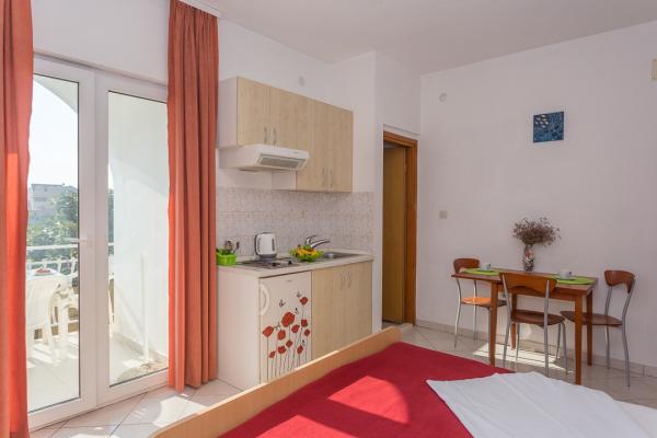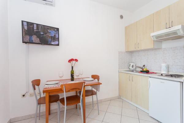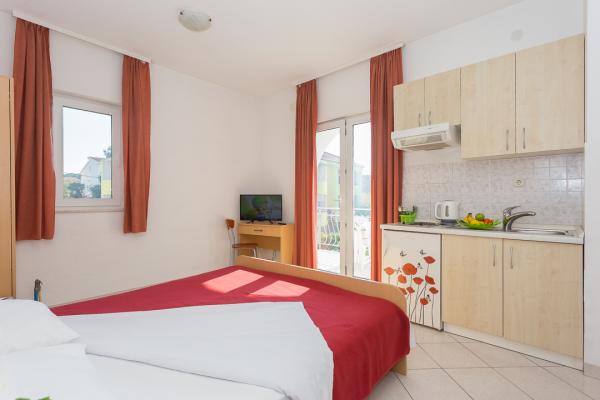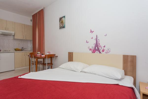 One- and two-room apartments and studios. In the very center of Pakoštan, right next to the main parking lot. Distance from the beach 70 meters, 10 meters from the bank and shop. Secured parking in front of the apartment, grill and wi-fi!