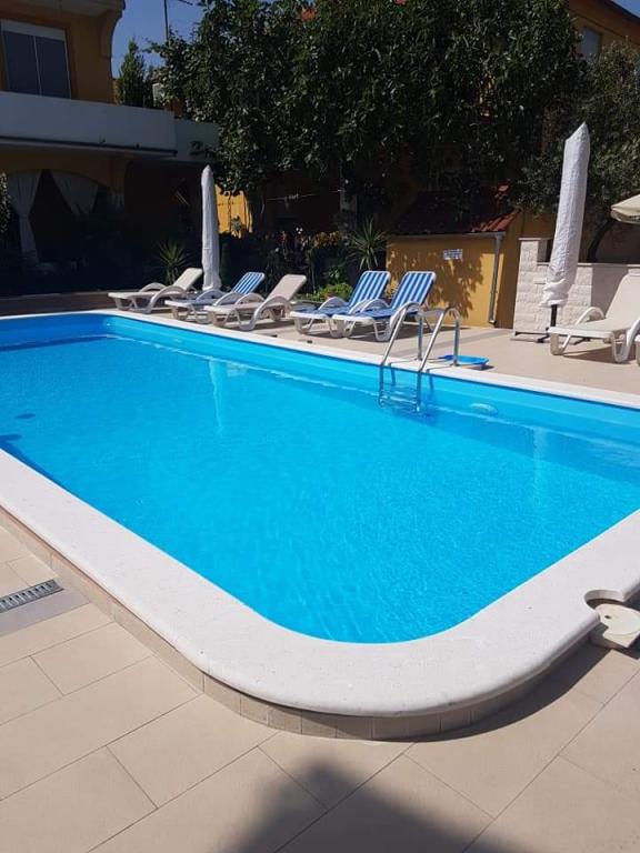 My family and I vacationed in the Vinka app for the first time this year. The apartment is very carefully and meticulously maintained. Refreshing in a clean swimming pool or resting on a deckchair is a wonderful diversion. Mrs. Vinka and Mr. V. are very friendly, helpful and always available. During our stay, the lady spoiled us with homemade vegetables and an aperitif. We really enjoyed it! Thank you! Near bakery and shop.
