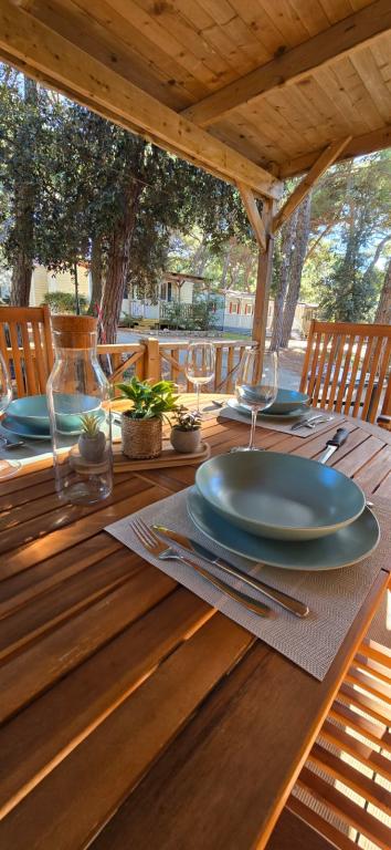 Camping units Vomer are a group of mobile homes located in Pakoštane, within the Kozarica campsite. Pakoštane is a small Dalmatian town with a unique location, situated in the very center of the Adriatic coast, between the sea and Vrana Lake. The mobile homes are located in a pine forest, right by the sea. The beach unit is just a minute's walk (50 m) from the beach, while the others are 100 m from the beach and about a 5-minute walk from the center of Pakoštane. The main town beach, Janice, is a 10-minute walk away, while Dalmaland Fun & Water Park is just 4 km from the property.
