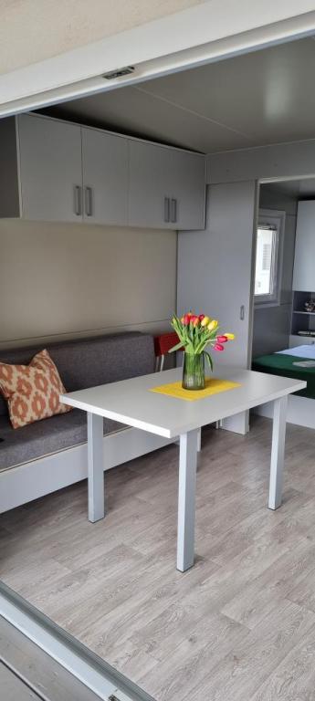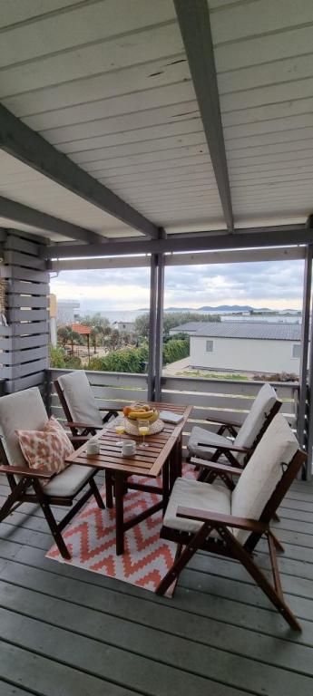 Mobile homes located in the center of Pakoštane, right next to the main sandy beach with direct sea views. The mobile home has two bedrooms, a dining room, a kitchen, a toilet and a large terrace (5). All guests have a grill at their disposal. Guests are provided with a parking space. Pets are allowed but an additional charge of €7/night per pet is charged. We have our own boat mooring and trailer parking, which are available to guests for an additional fee.