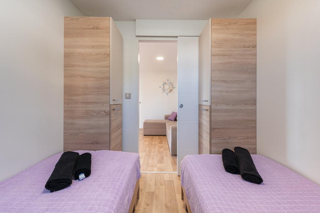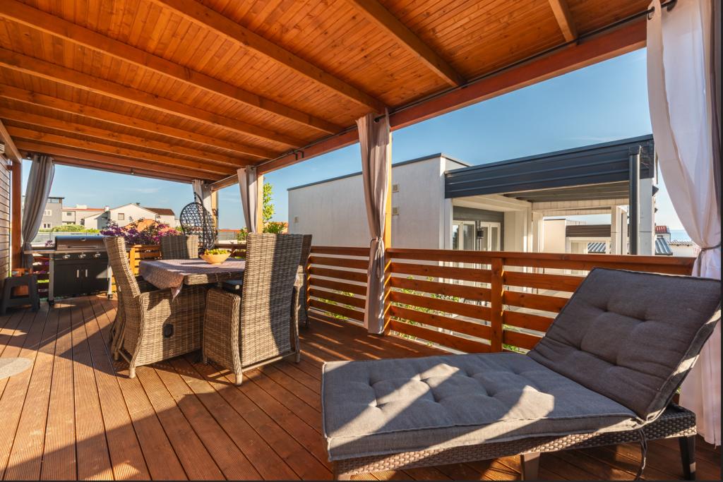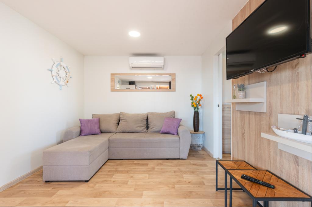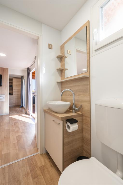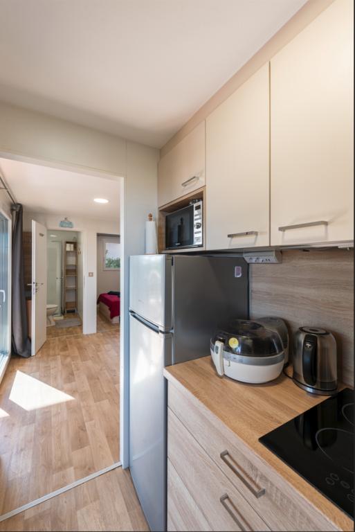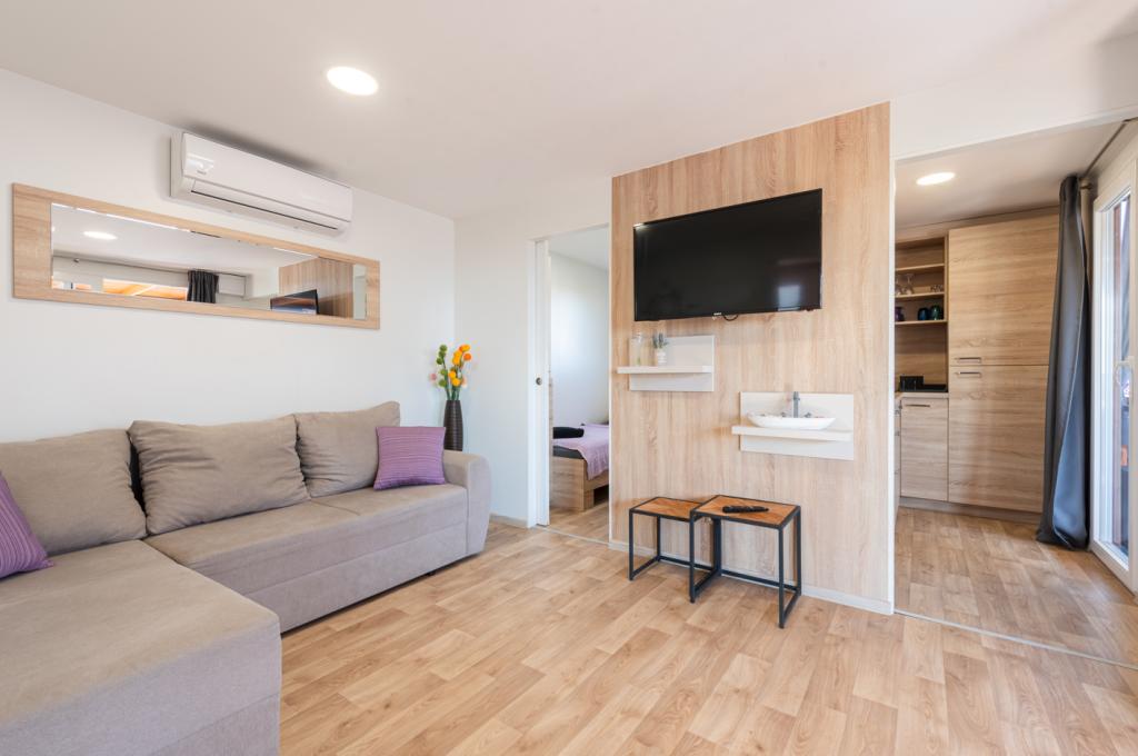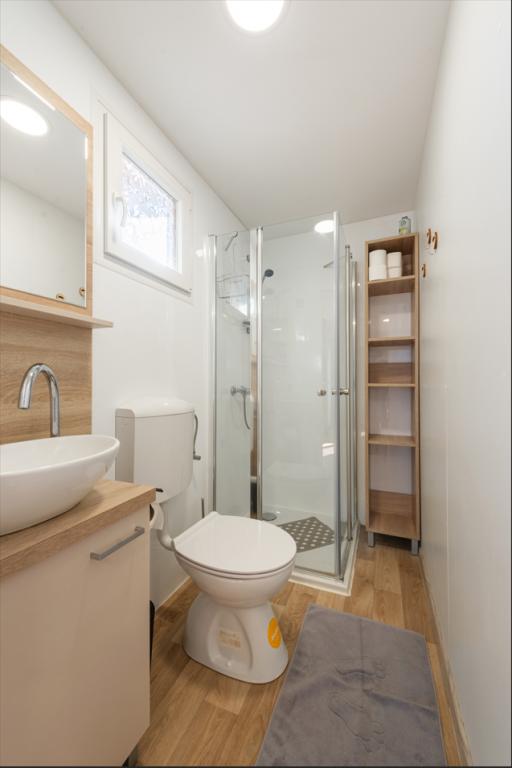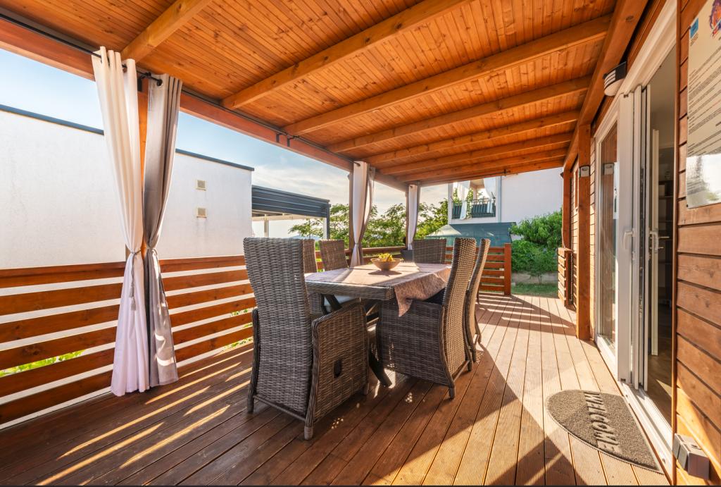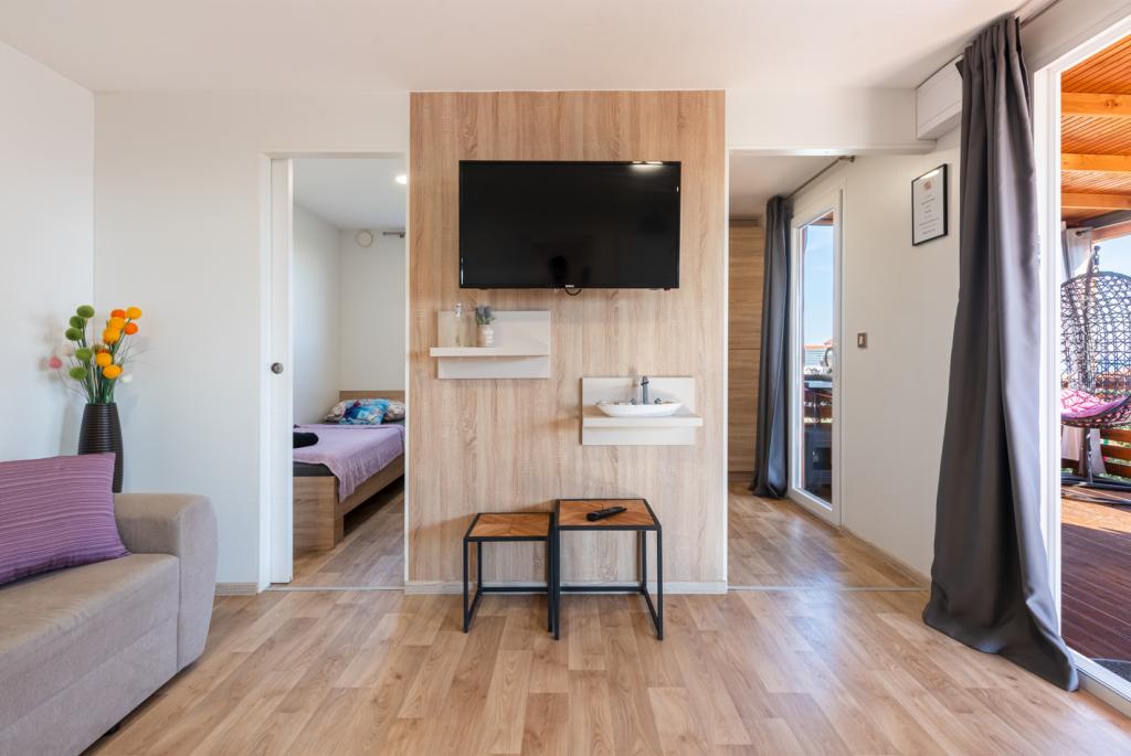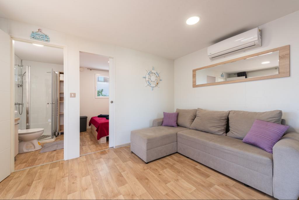 Mobile house Seashell is located in the beautiful Dalmatian town of Pakoštane. The house itself is located in the private Mara camp, only a 2-3 minute walk from the main beach. For complete and uninterrupted enjoyment of our dear guests, we have provided air conditioning, WiFi in all rooms and on the terrace, a large gas grill, TV + (HBO), private parking for two vehicles and a large (24m2) and covered terrace. Camp Mara is located in the very center of Pakoštane, only two hundred meters from the main waterfront and beach. The camp and the house are located in a dead-end street in a very quiet and pleasant location. CHECK IN: from 2 p.m. CHECK OUT: until 10 a.m