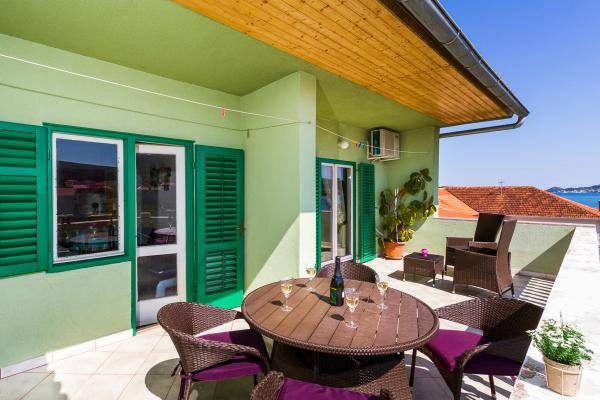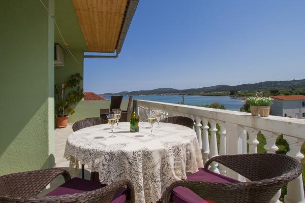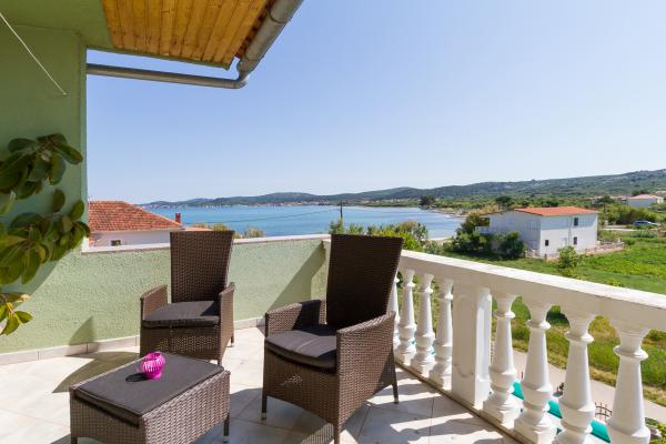 WE ARE FIRST ROW TO THE SEA. Ideal for a family vacation. The sandy beach is 20 m away from the apartment. The town center is only 200 m away. The apartments are in a family house, on 2 floors. The price includes FREE WIFI, free parking, air conditioning, outdoor barbecue. A5 - is located on the 2nd floor. It has a bedroom with a double bed (180 - 200 cm) and 2 single beds, a toilet, a separate living room with a sofa bed, LCD and a new kitchen. The apartment has a huge terrace overlooking the entire Pašman Channel. It has air conditioning. A4 1 is located on the 1st floor. It has a bedroom with a double bed (180 - 200 cm) and a sofa bed, a separate living room with a corner sofa bed for 2 people, LCD, toilet, kitchen. Each room has its own balcony with a sea view. It has air conditioning.