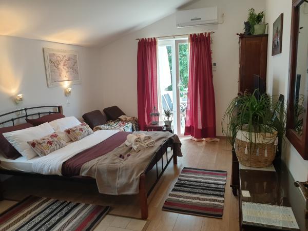 Fully furnished apartments in the bay Lucina in Pasman on the island of Pasman. They are located in the house next to the sea and sandy beach ideal for families and for children. The bay is located outside the center of Pasman and offers you a peaceful holiday, while within walking distance of shops, restaurants, coffee bars and the like. There are 3 apartments on the ground 1apartment for 6 2 persons and on the floor 2 apartments, a studio apartment and apartment for 3 2 persons. Guests have access to a large terrace overlooking the sea, barbecue and free parking. The beach is located just in front of the house.
