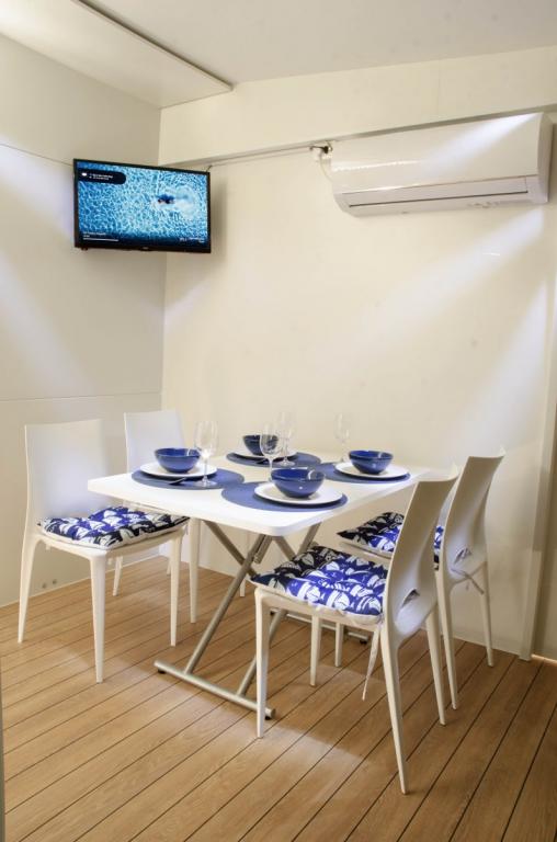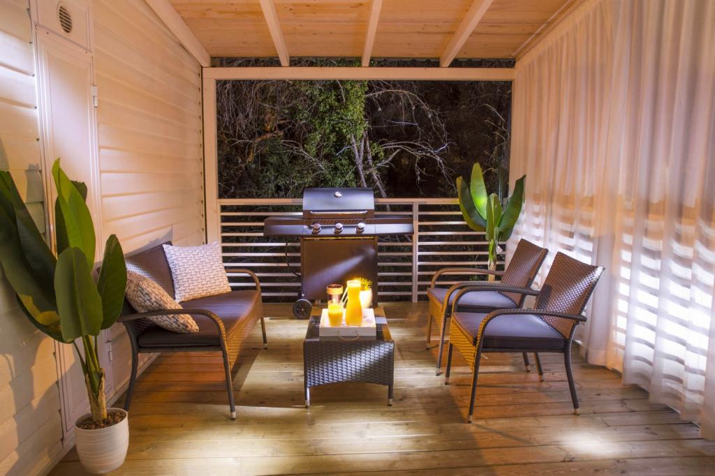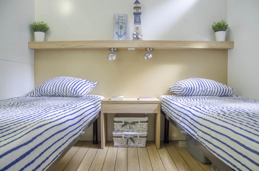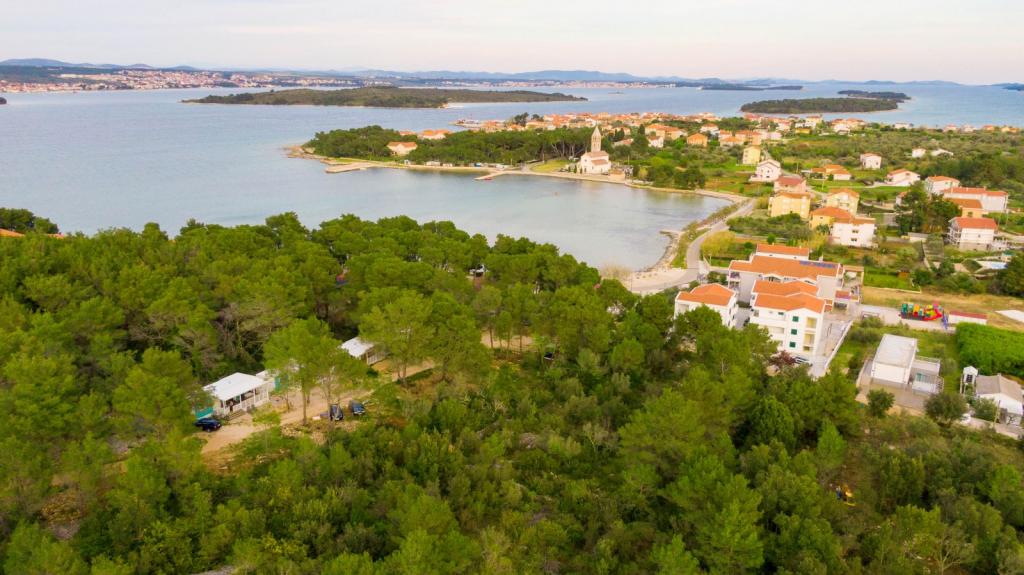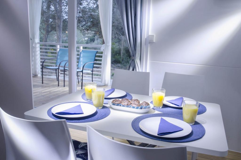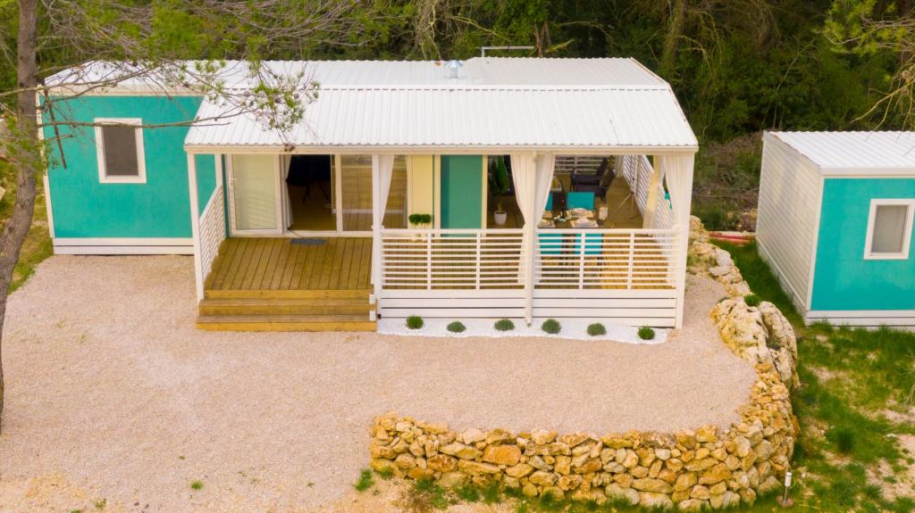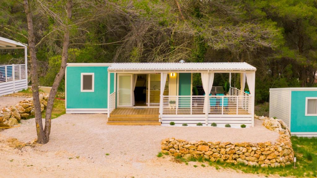 30 m2 of house area and 31 m2 of terrace area for pure enjoyment of all the senses. Breathe in the clean sea air and enjoy the shadows of the pine forest. This holiday home is ideal for the whole family, and the wider location offers many opportunities for trekking, cycling or fishing. The house has a room with a double bed, a room with two separate normal beds, bathroom with shower and toilet, kitchen with large refrigerator, dishwasher, gas stove, kettle and all other necessities, common area with dining area table, pull-out sofa with double bed, TV and air conditioning and a large terrace with another table, seating and large white curtains for a sense of privacy and romance. The facility has Wi-Fi internet.