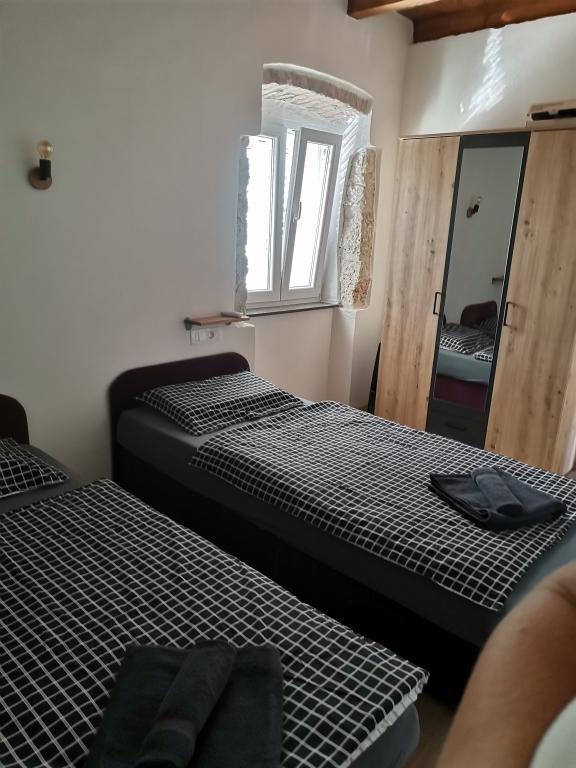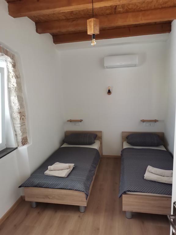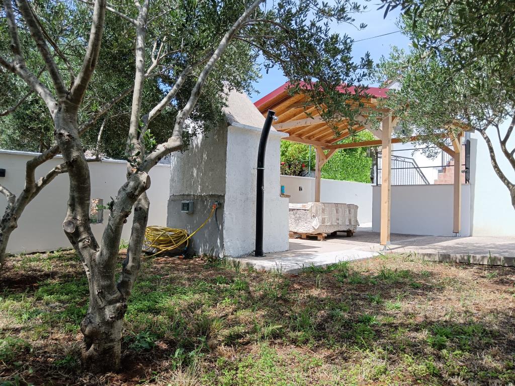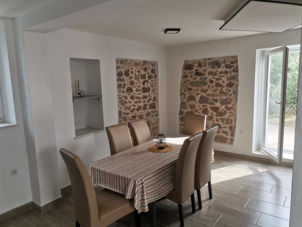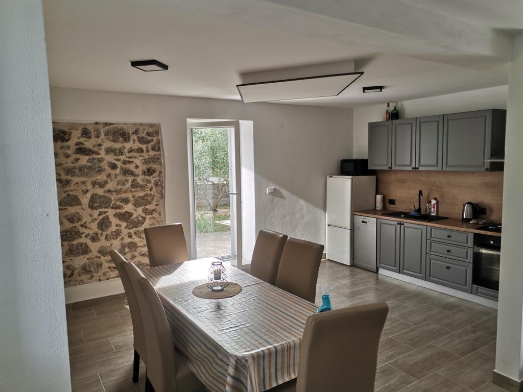 Renovated old house from Dalat, located in a quiet and relaxing area of the small town of Banj. The house is located a 7-minute walk from the sandy beach, cafe bar, shop. Distance 400m. The house consists of a kitchen (dishwasher, microwave, kettle), a living room, and a toilet on the ground floor. The first floor of the house consists of three rooms. The rooms are air-conditioned. Master room (toilet, hairdryer) bed 180x200. The other two rooms each have two 90x200 beds and a shared toilet in the hallway. In the yard of the house there is a grill and an outdoor table and chairs surrounded by olive trees.