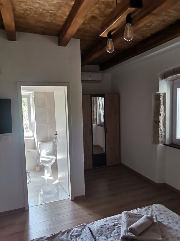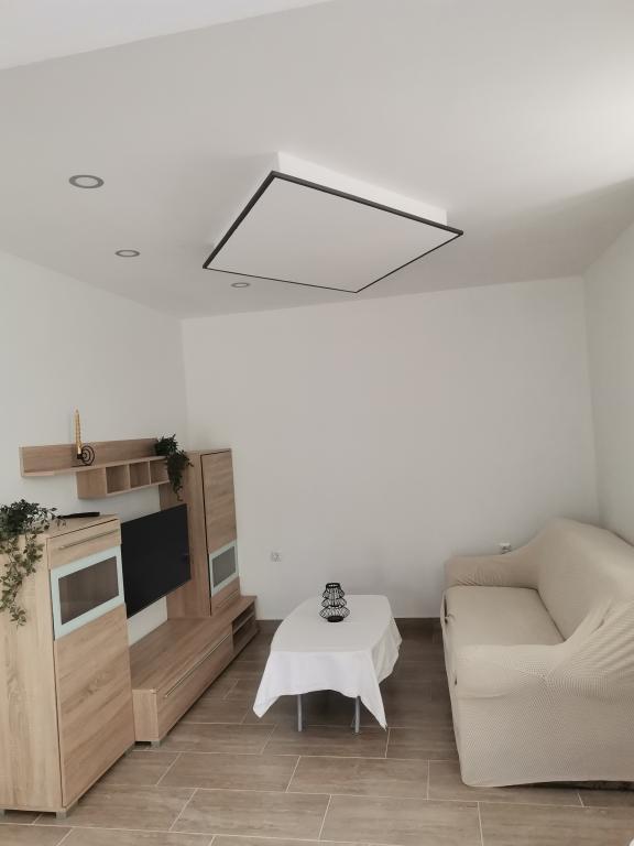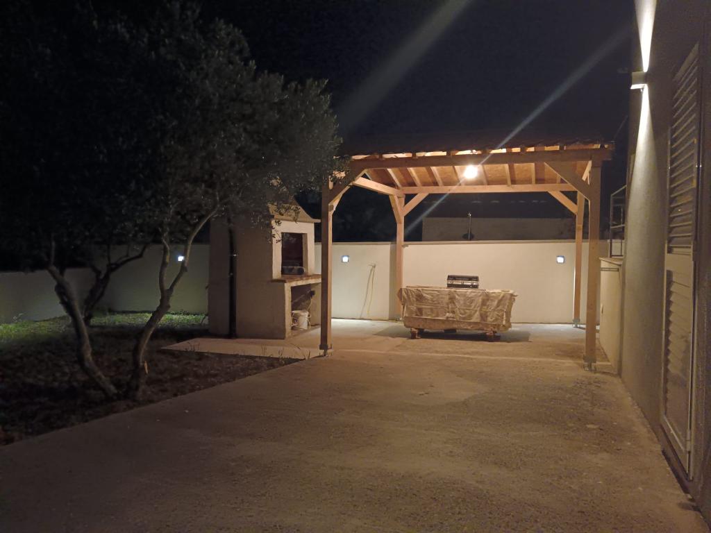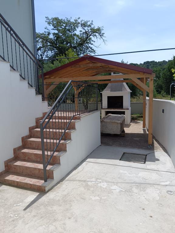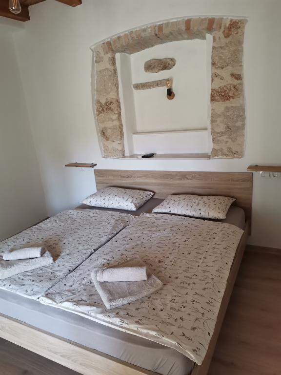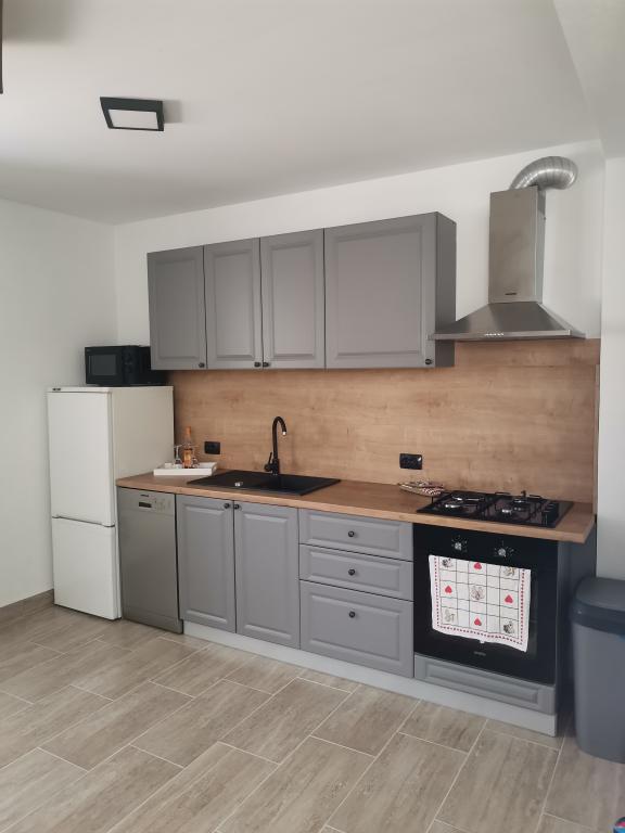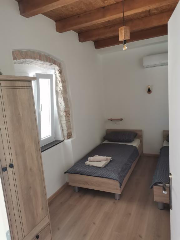 Renovated old house from Dalat, located in a quiet and relaxing area of the small town of Banj. The house is located a 7-minute walk from the sandy beach, cafe bar, shop. Distance 400m. The house consists of a kitchen (dishwasher, microwave, kettle), a living room, and a toilet on the ground floor. The first floor of the house consists of three rooms. The rooms are air-conditioned. Master room (toilet, hairdryer) bed 180x200. The other two rooms each have two 90x200 beds and a shared toilet in the hallway. In the yard of the house there is a grill and an outdoor table and chairs surrounded by olive trees.