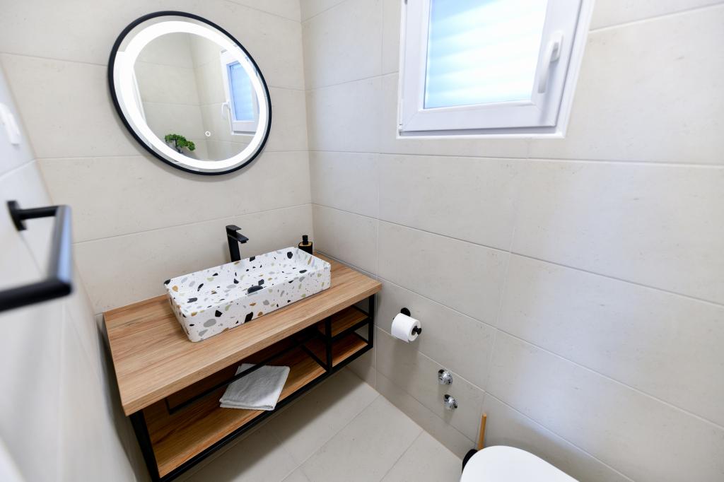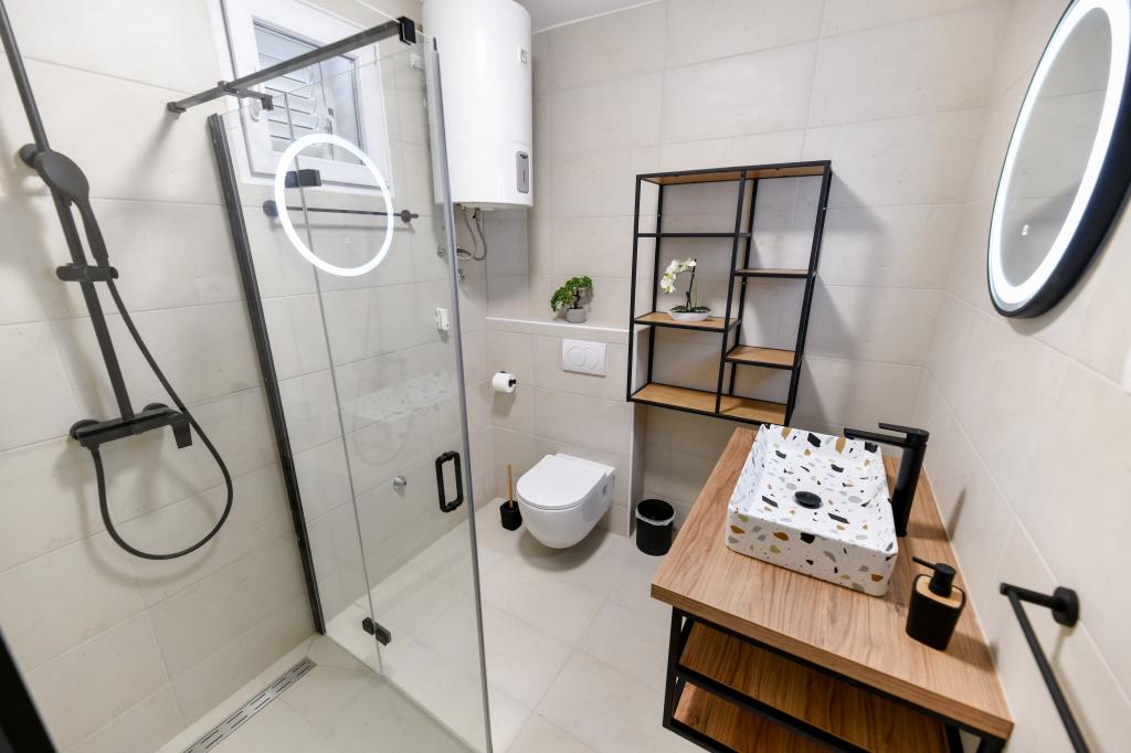 The house is located on the island of Pašman, in an oasis of peace, silence and beauty of a typical small Dalmatian town. Three minutes walk to the beach, five minutes to the store. The facility has a large outdoor terrace, barbecue, deckchairs, a swing for rest and a hydromassage tub. On the ground floor there is a large living room with a kitchen, two bathrooms and three toilets, and a washing machine. There are 4 bedrooms on the first floor, two rooms have access to a large terrace overlooking the sea, a double bed size 180x200, and the other two rooms have a double bed 160x200, and a view of the forest. There is also one toilet on the first floor. A baby cot is available on request. There are three parking spaces in the yard, as well as the possibility of using an outdoor shower. The house was completely renovated in May 2023. A stay of 10 people is also possible, in which case accommodation is provided for two people in a studio apartment on the same plot, with an additional charge. The studio apartment has a kitchen with all appliances, a bathroom with a shower, TV, air conditioning, and a terrace with a view of the sea.