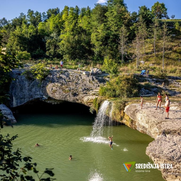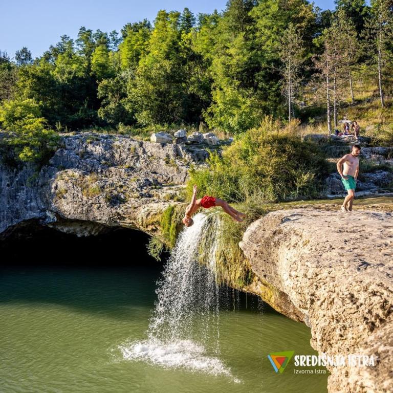 Upon arrival, you will be greeted with a welcome drink. The kitchen is fully equipped even for a longer stay and includes spices, oil, vinegar, coffee, tea, milk, dishwasher tablets, dishcloths, etc. In the bathroom you have toilet paper, hair shampoo, hand soaps, shower gel, laundry tablets, sponges, cloths, etc. The rooms are equipped with white linen, blankets, TV and AC. You have a wood-burning fireplace, wifi, 3 TVs, 3 ACs, parking in front of the house, and a children's playground nearby. In the area there are numerous walking trails, fishing lakes, hiking trails, wineries, restaurants with authentic Istrian cuisine, and tourist attractions. For information about activities in the Draguć area, please contact us. Near Draguć is Zarečki krov, which is one of the largest waterfalls in Istria, where you can find refreshment and swim in fresh spring water in the summer. Also, in the immediate vicinity are Motovun, Hum, Roč and other wonderful places in central Istria.