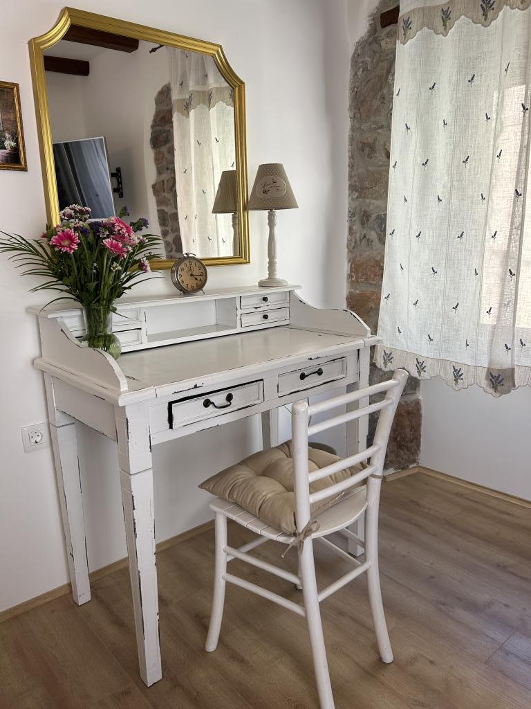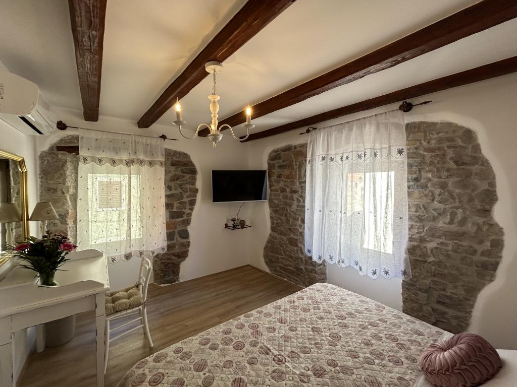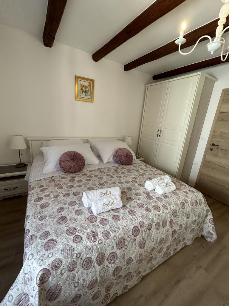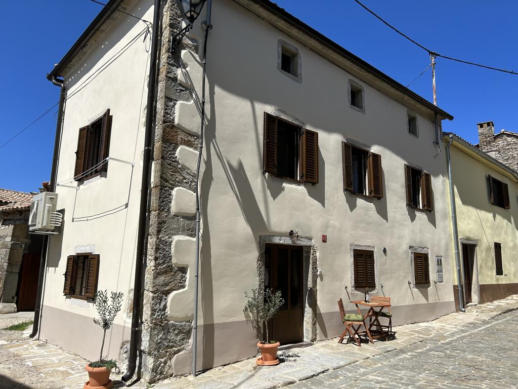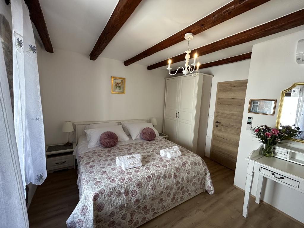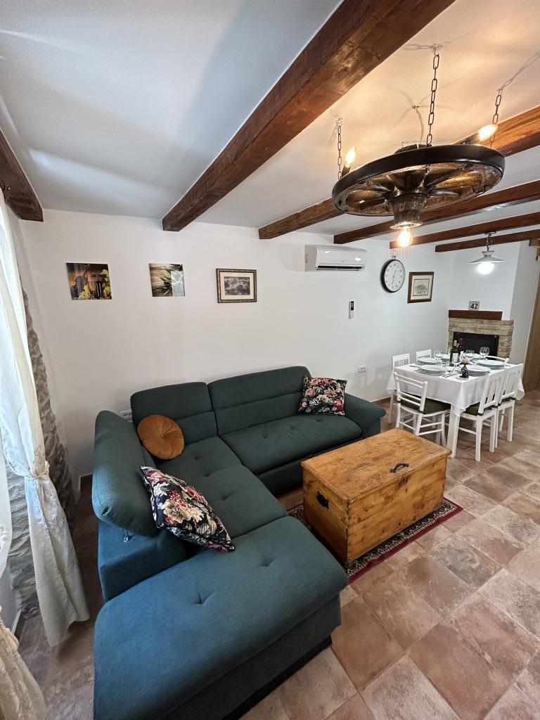 The Istrian town of Draguć is a hidden gem in central Istria. It is often called the Istrian Hollywood because many filmmakers have chosen this town for the backdrop of their films. If you are looking for peaceful places with beautiful views of nature, this place is perfect for you. Casa Stella was completely renovated in 2023, the beams on the ceilings and the original stone walls give it a rustic touch, but the house is also adapted to the modern era and equipped with new and modern household appliances and devices. On the ground floor of the house there is an open space area that includes a living room, kitchen and dining room. In addition to the open space area on the ground floor there is also a bathroom where you have a washing machine and a dryer. The kitchen is equipped with a dishwasher, microwave, coffee maker, kettle and kitchen utensils. On the first floor there are two spacious bedrooms and a bathroom. In front of the house there is a table with chairs where you can spend time outdoors.
