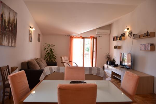 Spacious apartment in the center of Peroj village, 3km from Fažana. It occupies the 2nd floor. It has 2 large bedrooms with double beds. in one room is an extra bed. Features a spacious living room, kitchen and 2 balconies. In the living room there is a sofa that stretches into bed. Using wi-fi internet for free. Walk to the beach is about 10 min. Parking in the yard.