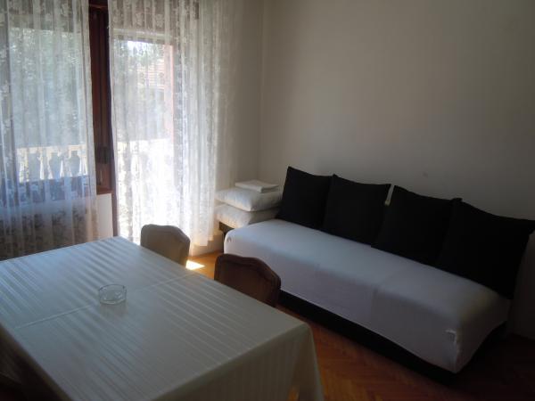 At the edge of the village, overlooking the sea and 350 m away from the nearest beach and 200 m from the center, accommodation is close to all amenities and at the same time isolated from the tourist crowds. Apartments are always pleasantly air-conditioned and well equipped for the needs of a family and longer holidays.