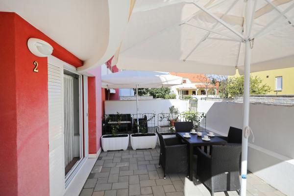 Villa Pino is located just 100 meters from the beach in the elite part of Petrčani - Punti Radman. Sandy and pebble beaches, pine forest and crystal clear turquoise sea make our apartments ideal for spending your vacation. Villa guests can relax in the swimming pool with hydromassage, Finnish sauna and outdoor heated hydromassage Jacuzzi. On the beach below the apartment, guests can use our pedal boat, kayaks and sunbeds for free. The villa has a covered private parking lot, and the children have access to a playroom with a Play Station 4 console, darts, table football and board games. Various restaurants, cafes, bars and grocery stores are nearby. Guests who like recreational running, walking and cycling can enjoy a 10 km long illuminated promenade. We invite you to spend your vacation in a heavenly environment in the spirit of the Mediterranean. If you choose us, you will surely come back again, just like most of our guests who rated our apartments highly.