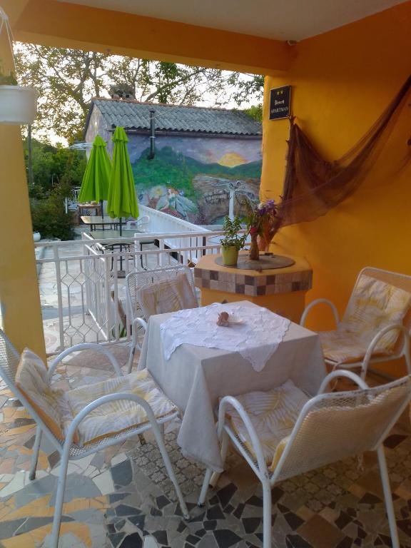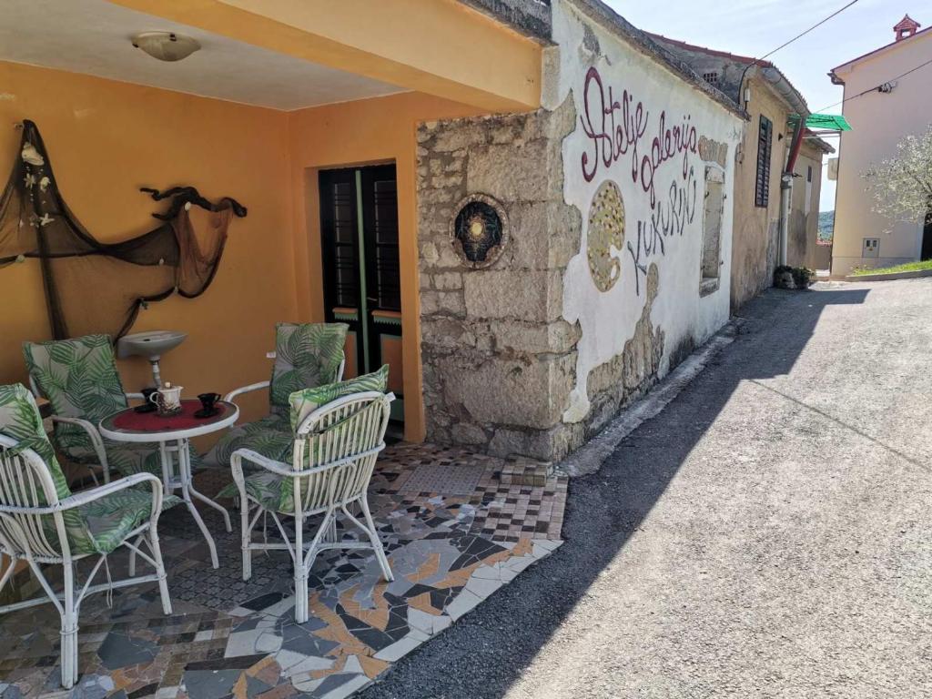 The apartment is located in the village of Kukurini, the town of Pićan in Central Istria. It is decorated in artistic and old Istrian style (old stone Istrian house). The apartment has a balcony and a terrace and a place for a barbecue (summer kitchen). Guests can view the studio gallery and buy artworks and souvenirs from the hostess Barbara Špiljak Presečki. Parking provided. Shop and post office nearby.